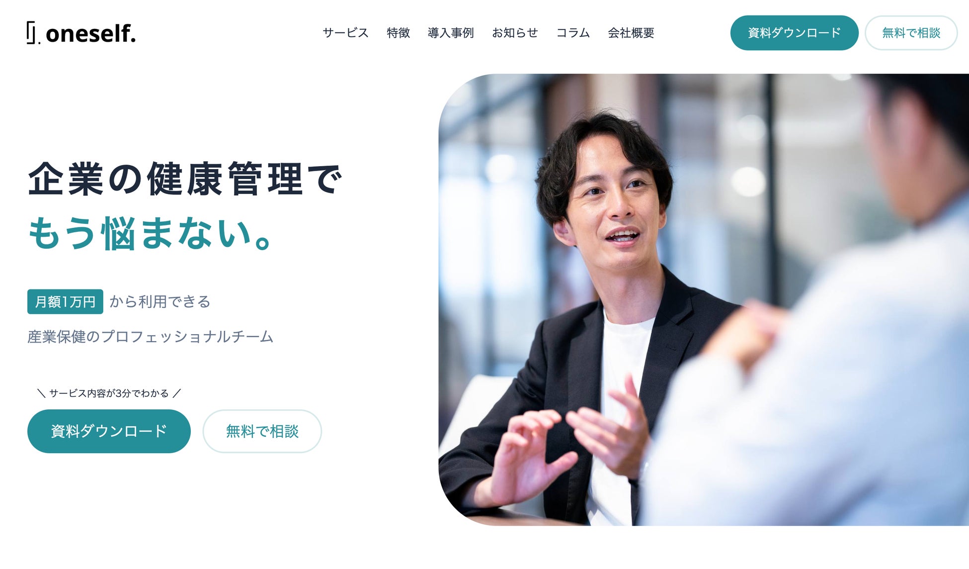 企業の健康管理でもう悩まない!保健師・産業医サービスを提供する株式会社oneself.が、コーポレートサイトを全面リニューアル