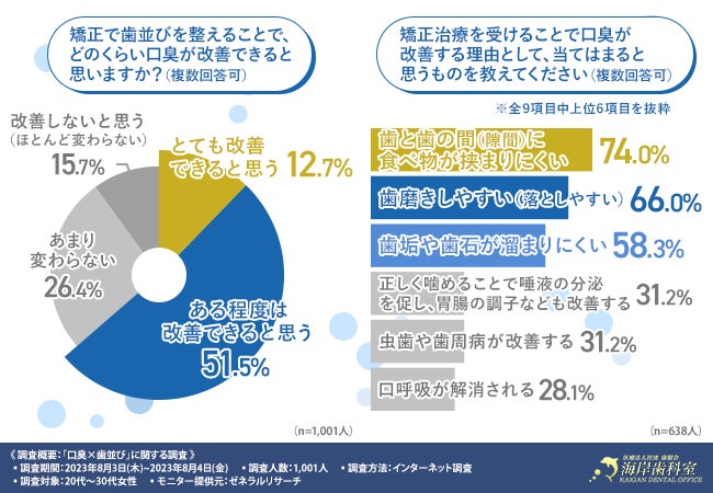 そこで今回、千葉市のインビザライン対応クリニック医療法人社団康樹会 海岸歯科室(https://kaigan-hanarabi.com/)は、20代~30代女性を対象に「口臭×歯並び」に関する調査を実施しました。