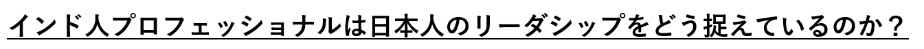 ・インド人プロフェッショナルは日本人のリーダシップをどう捉えているのか