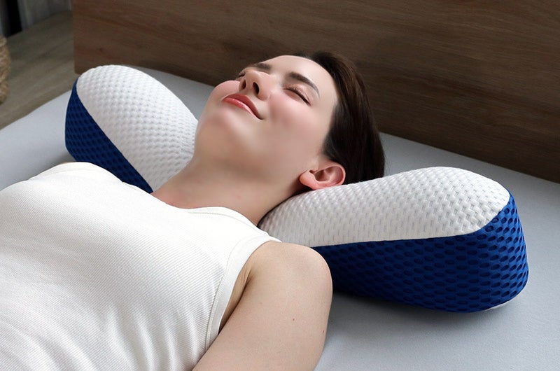 そのままに、後頭部部分が無い、首を支えるブリッジ付きの新しいデザインの枕が登場!