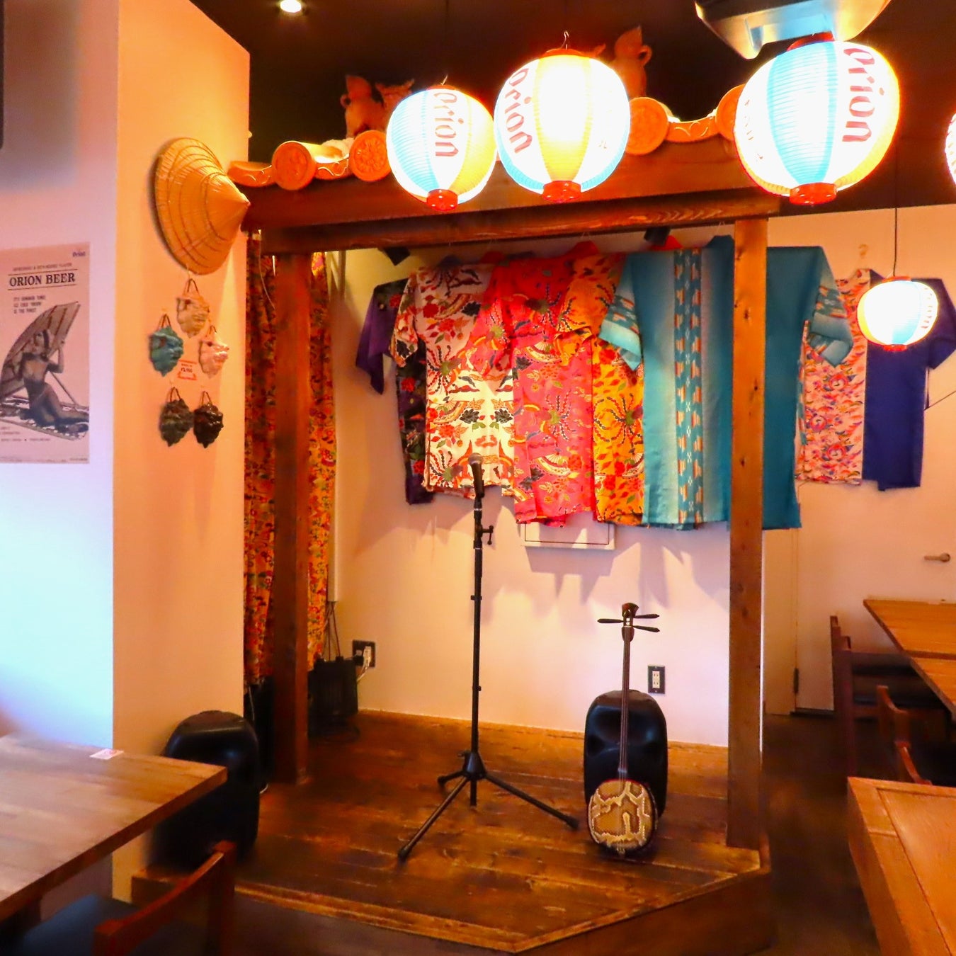 民謡から沖縄ポップスまで幅広い楽曲を演奏。演者さんと一緒に歌ったり、カチャーシーを踊ったりなど本場沖縄のライブ居酒屋を体験できます。
