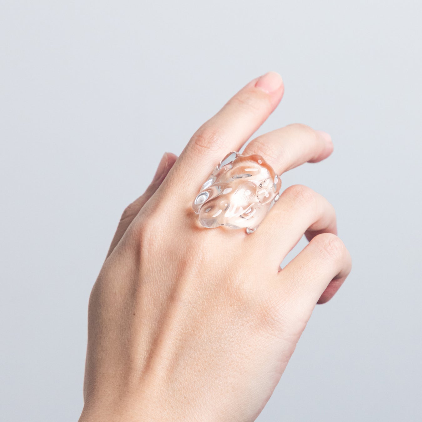 SHIBOU seriesは、身体の一部である「脂肪」がモチーフ。 無駄で醜いものとされる脂肪を美しいガラスで表現したアクセサリー。迫力のある見た目と裏腹の、軽やかさが魅力です。