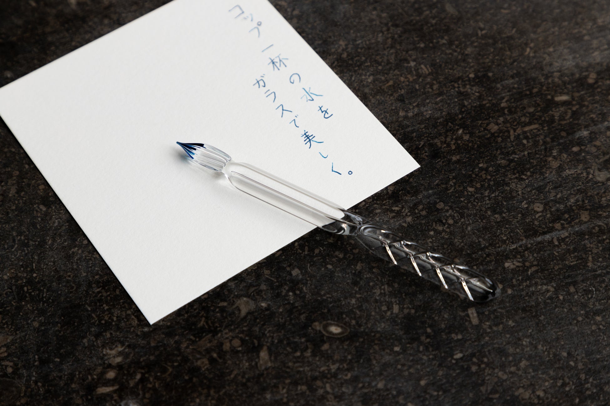 TSUCHI-YAのガラスペンは、鉛筆などの筆記具でも採用される三角軸。理化学実験で用いられる三角のガラス軸を素材に、切子カットを施しモダンなデザインへと昇華させました。「硼珪酸ガラス」は硬く切子加工が難しい素材。この難題を匠の技で見事にクリアしました。