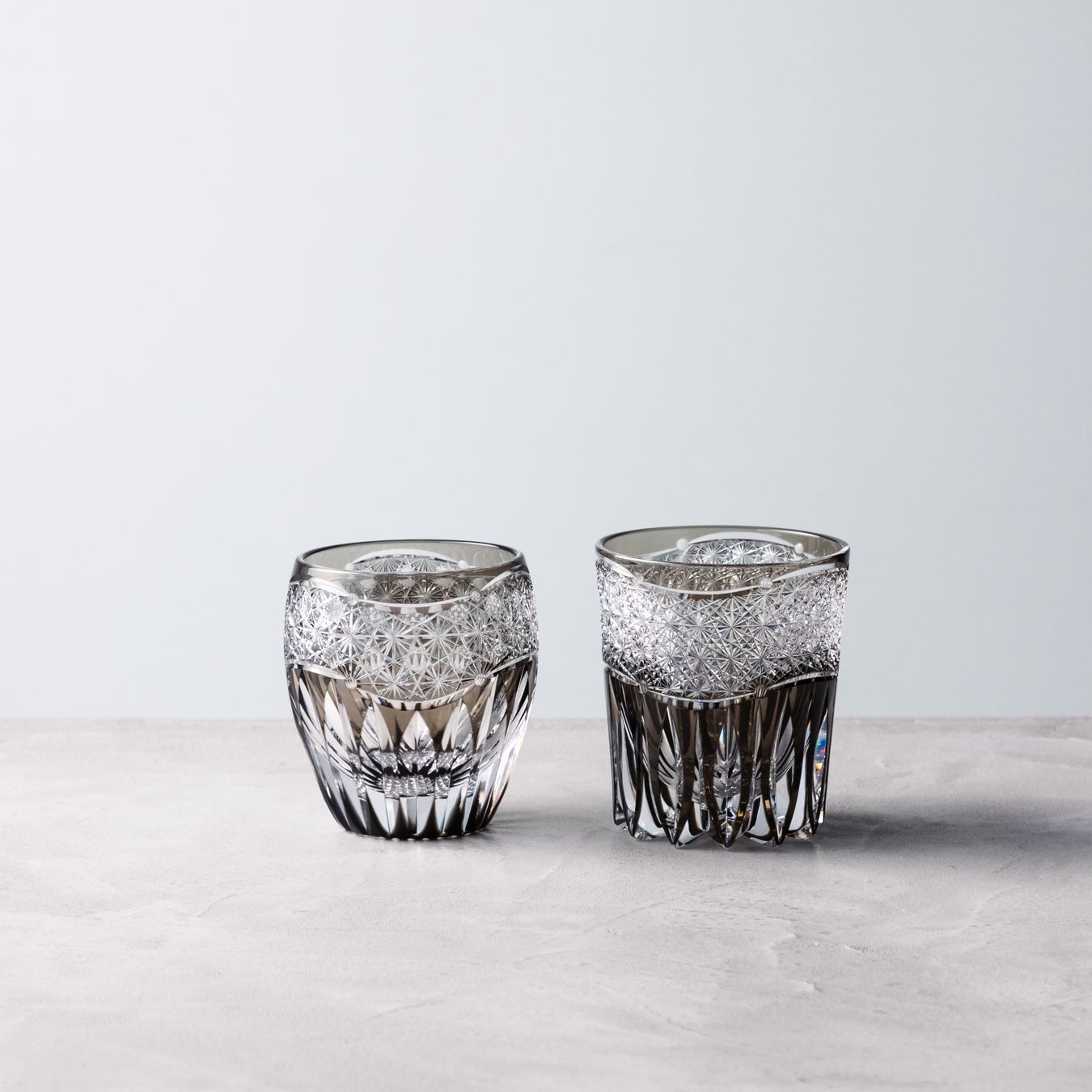 江戸切子伝統工芸士による繊細かつ華麗なグラスは国内外のお客様に支持されています。銀座店ではクリアと薄墨を中心に展開、花をモチーフにしたロックグラスを用意しました。