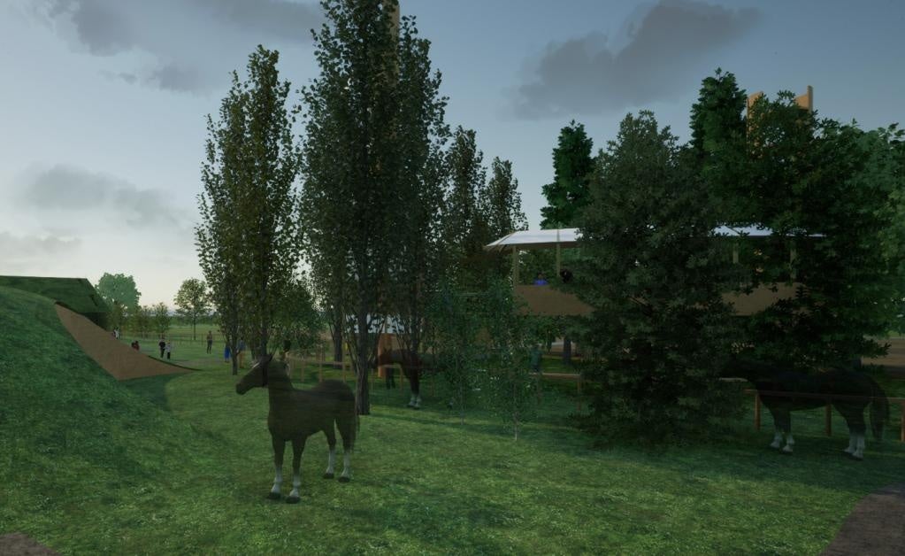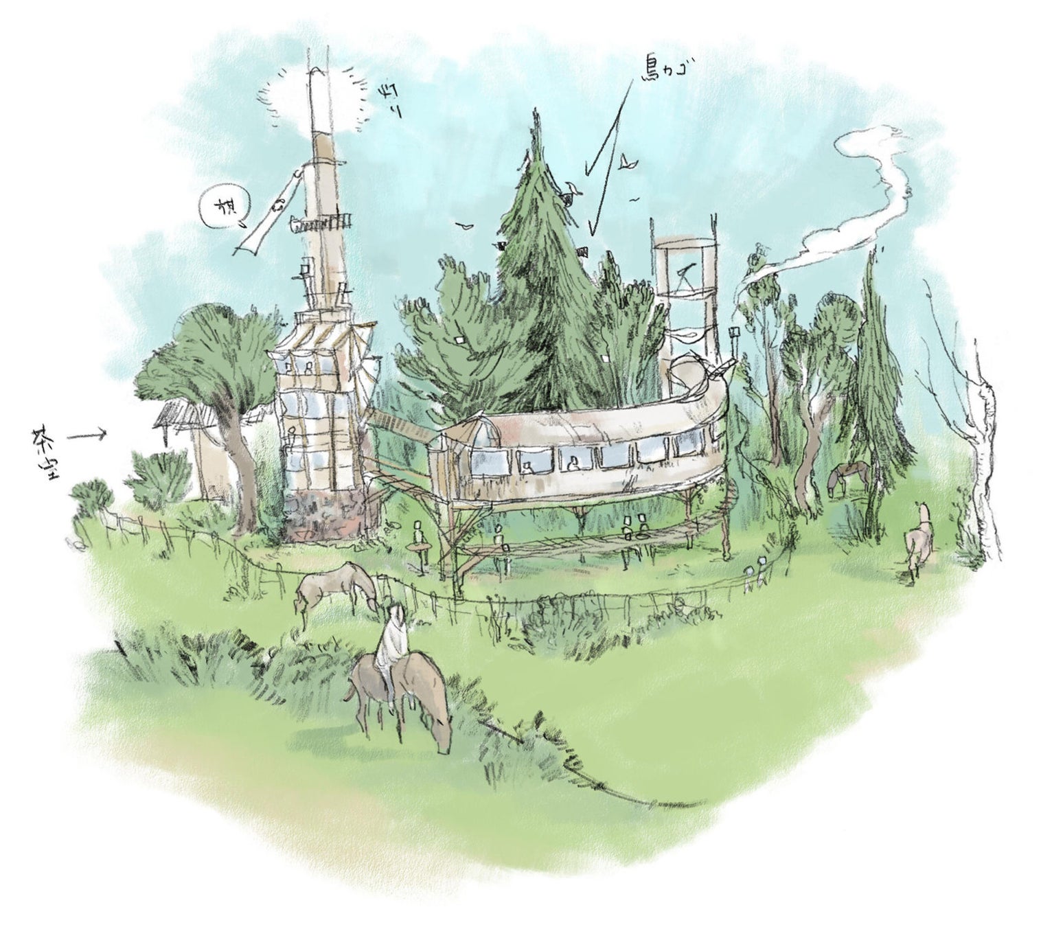 第一段階として、コミュニティ内部の交流・馬との交流のための施設を建設、その後、コミュニティメンバー以外も利用できるサービスを提供するための施設を建設し、浪江町の交流人口・観光人口の創出にもつなげることを想定します。