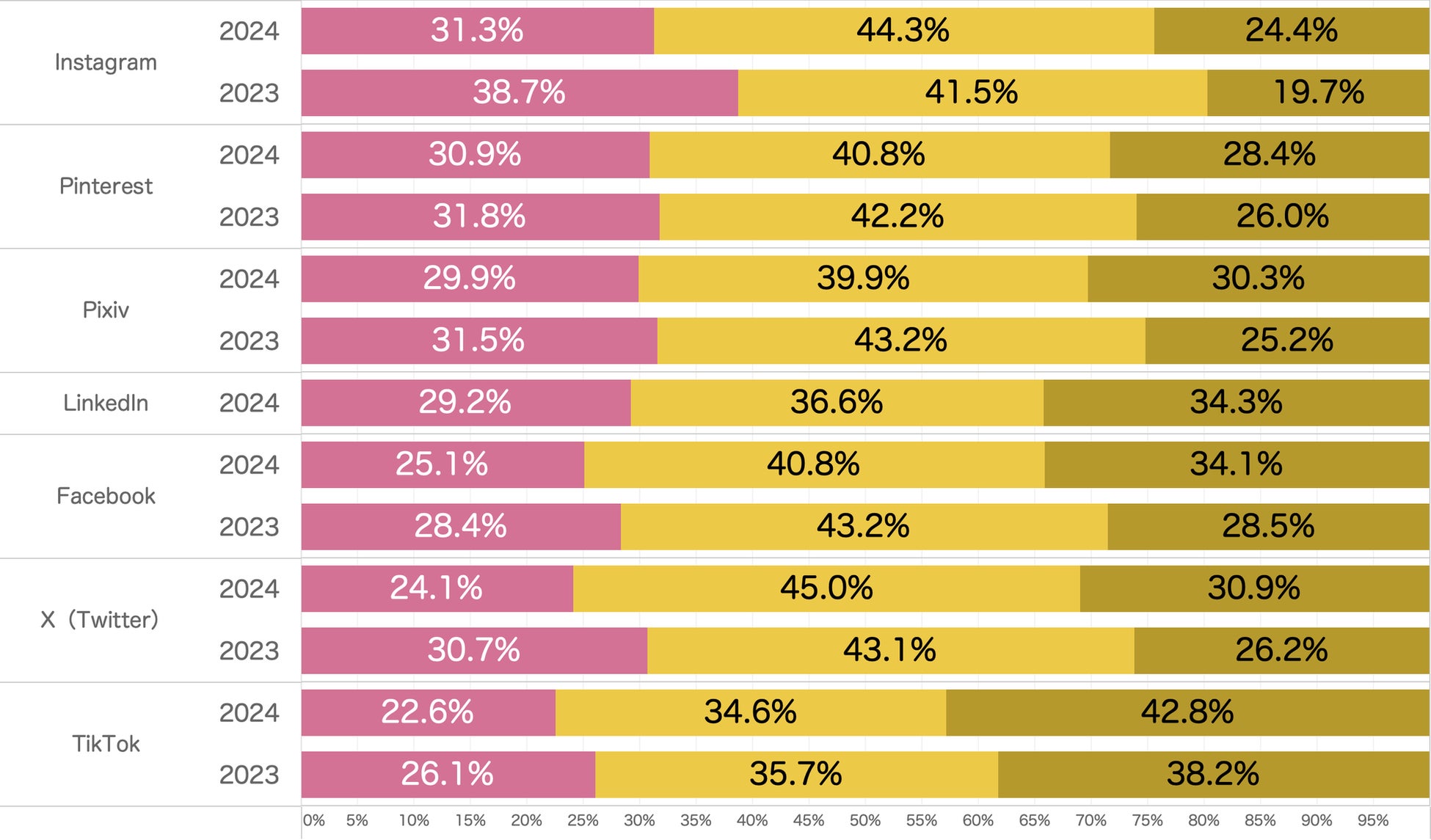・グラフ中に「2023」と表記があるものは比較対象として2023年の結果を入れております。特に表記が無いものは全て今回2024年の結果となります。