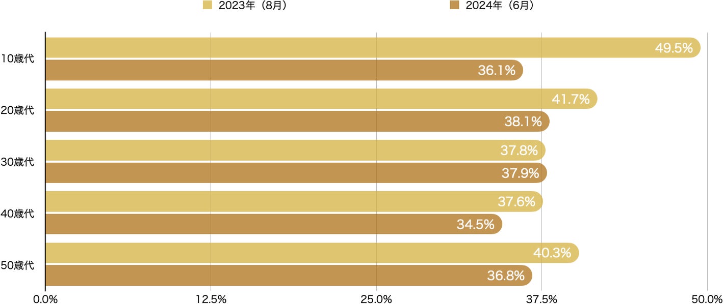 2023年時の調査結果と比較すると、30代を除きオンラインメディアへの信頼性は低下傾向となっています。特に10代からの信頼度が大きく低下している結果となりました。