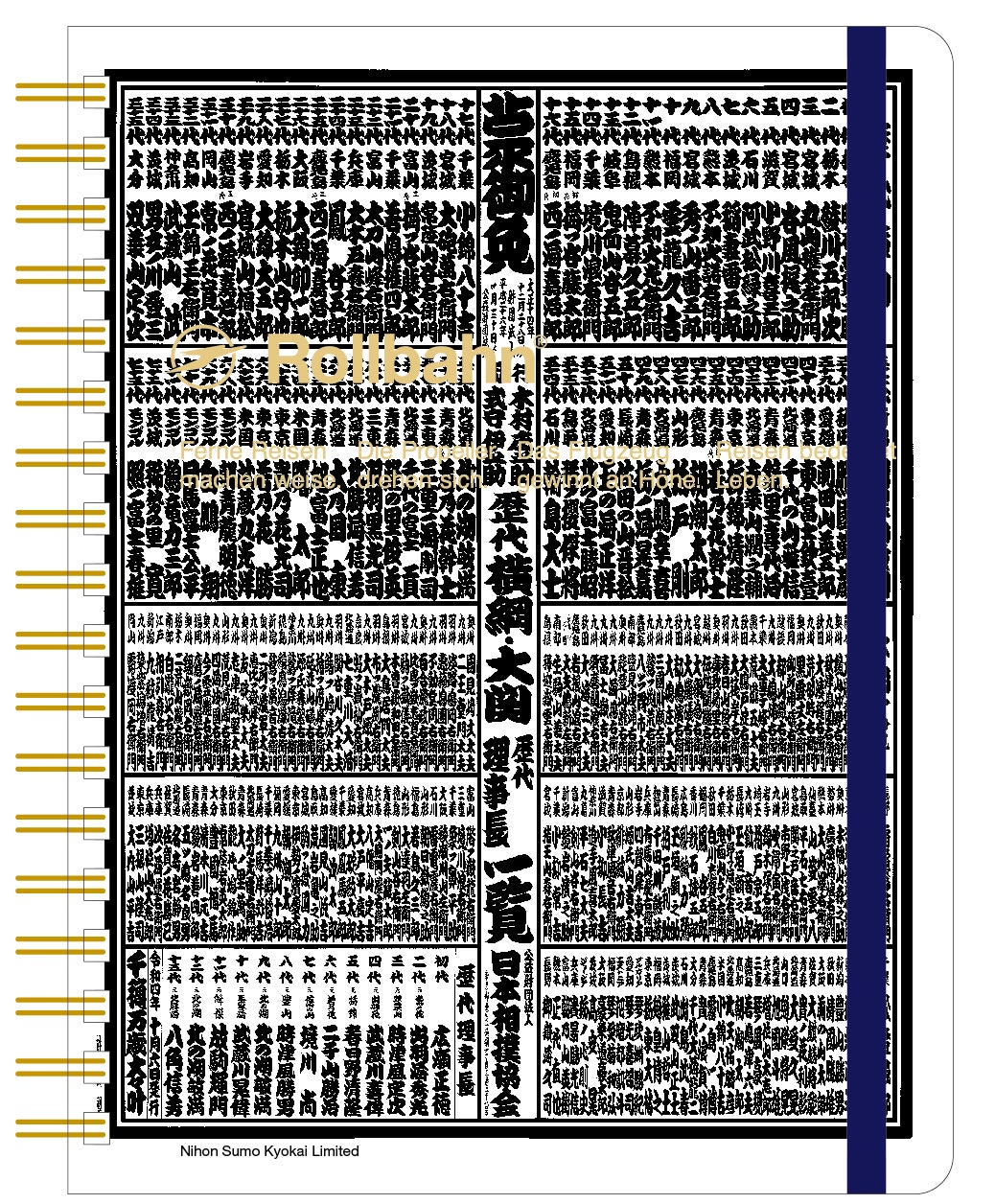歴代横綱・大関番付をあしらったモダンながらも大相撲の長い歴史を感じさせるデザインは、力強くもシンプルで普段使いにも最適です。番付表をよく見てみれば、伝説の横綱の四股名も。