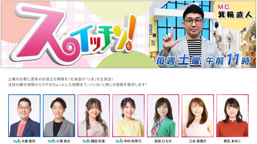 TVh毎週土曜の情報番組「スイッチン!」紹介Website:https://www.tv-hokkaido.co.jp/info/switchn/