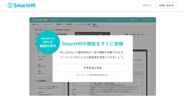 その第一弾として、下記のようにランディングページ上に雇用契約機能のデモを提供しています。