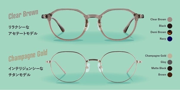 今回、お客様から「別のカラーもかけてみたい!」というご要望を多くいただき、トレンドであるライトカラー2色を追加いたします。アセテートモデルではふわりと優しい印象のニュアンスカラー「クリアブラウン」、チタンモデルではキリっと格好良い印象のハンサムカラー「シャンパンゴールド」をご用意いたしました。どちらも男性女性問わずかけていただけますので、クリスマスギフトとして、パートナーとお揃いのものをプレゼントするのもおすすめです。