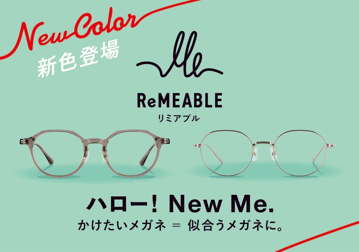 「ReMEABLE(リミアブル)」は、フレーム選びの際にいつも同系のデザインを選びがちなお客さまが潜在的に感じている「違うものをかけてみたいけど似合うか不安」の声に焦点を当て、あらゆる顔タイプに馴染むフレームを開発することで、お客さまのフレーム選びの幅を広げ、新たなご自身を発見するチャレンジを応援することがコンセプトとなった、当社オリジナルフレームブランドです。