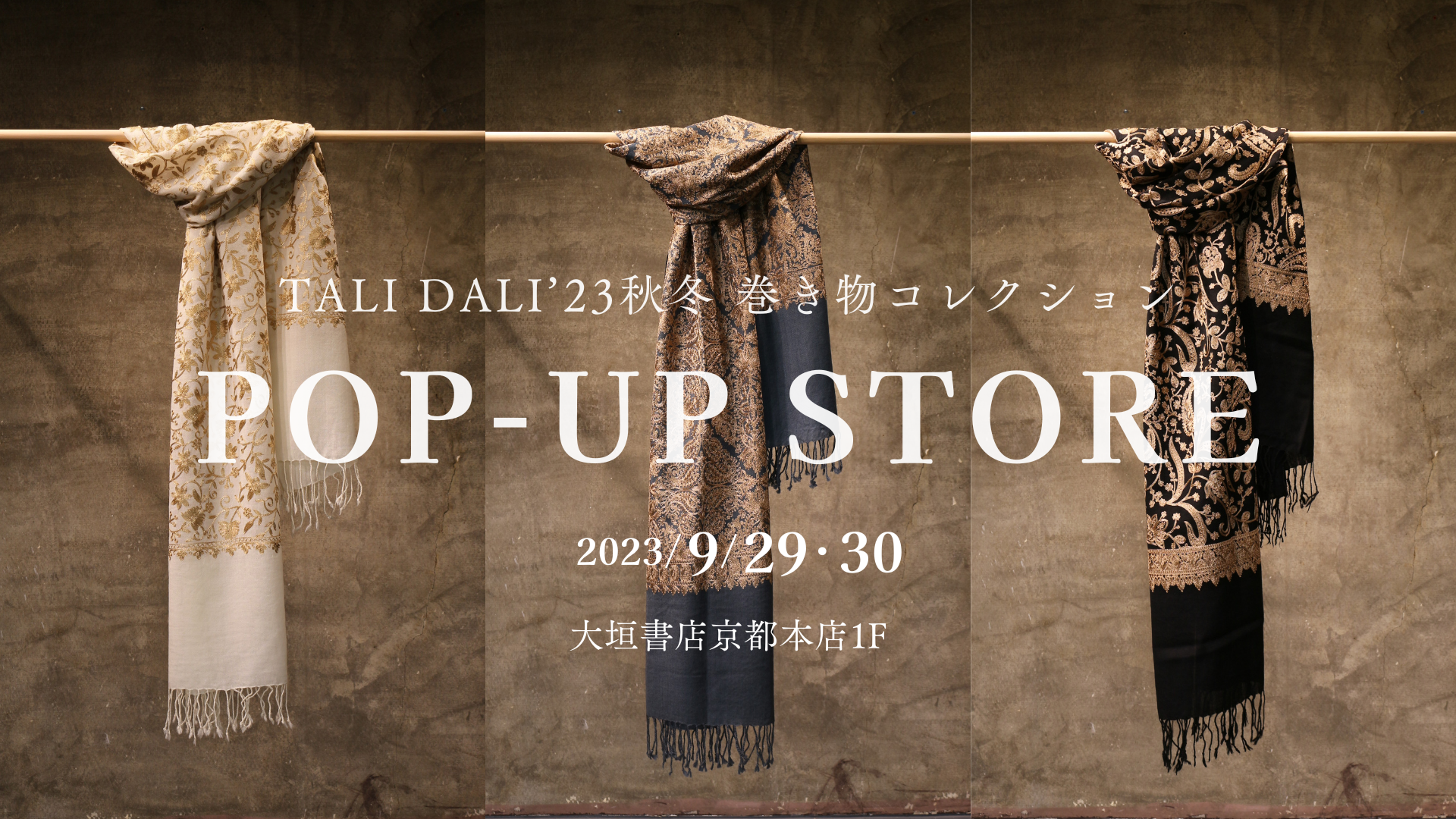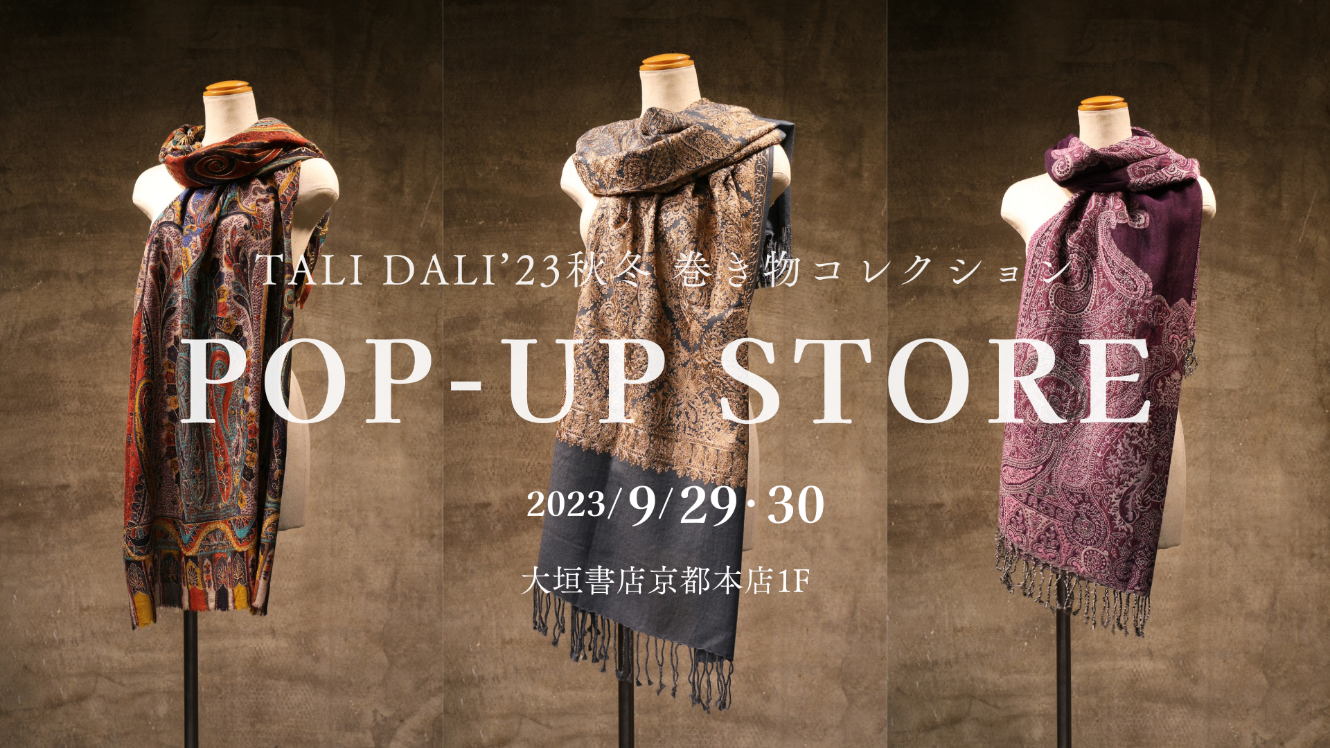 「巻いたり、敷いたり、包んだり。」をテーマに、和装でも洋装でもお使いいただける商品を販売する『TALI DALI』。インドのメーカーと長年にわたり築いてきた信頼のもと確かな技術と意匠が施された作品を、9月29日(金)・30日(土)の2日間限定で大垣書店京都本店にて販売いたします。今年、関西圏で秋冬物が手に入るチャンスはこれが最後。この機会にぜひ本物の天然素材の質感を体験してみませんか。