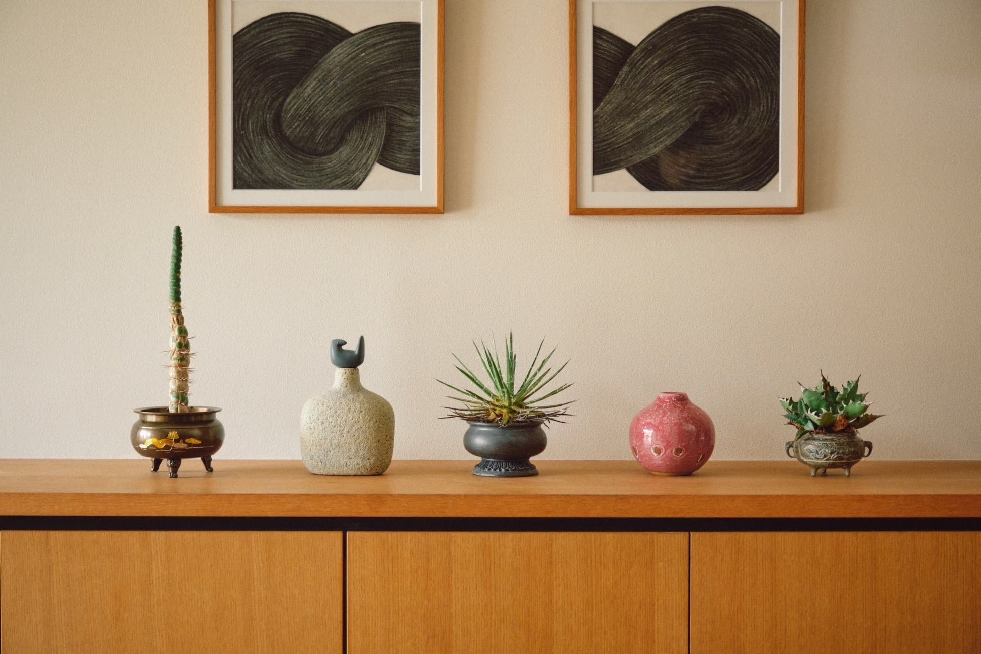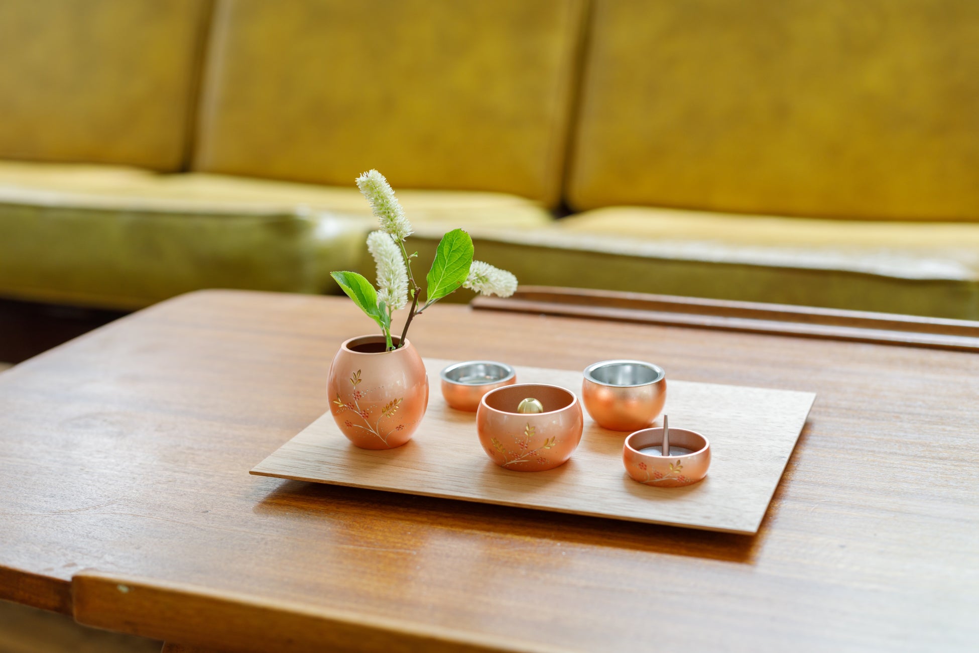 また、社内でデットストックとなっていた1980年代以降の仏具の香炉や花立を、現代の職人の手で加飾してアップサイクルし、現代の生活に戻すブランド「わびさびポット®︎」の企画開発・販売なども手がけています。1つとして同じものはない職人の手仕事と、そこに植物が加わることで自然との繋がりを感じられるプロダクトは、手元に置くことでふとスイッチを切り替えられるアイテムとして販売開始から話題となっています。