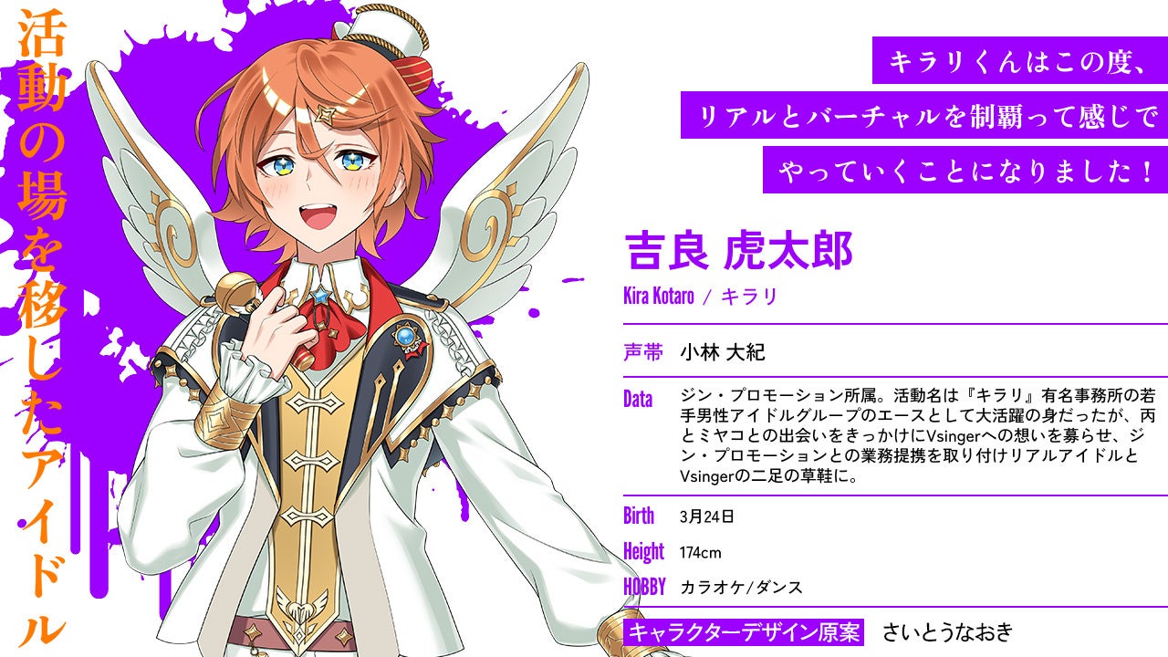 キャラクターデザイナーには、多数のゲームやTCGにアートワークを提供するイラストレーターでYouTuberとしても著名なさいとうなおき氏、大ヒット漫画『文豪ストレイドッグス』のスピンオフ作品『文豪ストレイドッグス 太宰、中也、十五歳』を連載中の漫画家・星河シワス氏、数々のゲーム向けイラストを手がけてきた実力派のイラストレター・らいす氏の3名を迎え、卓越した造形による6人の魅力的なVシンガーが誕生しました。