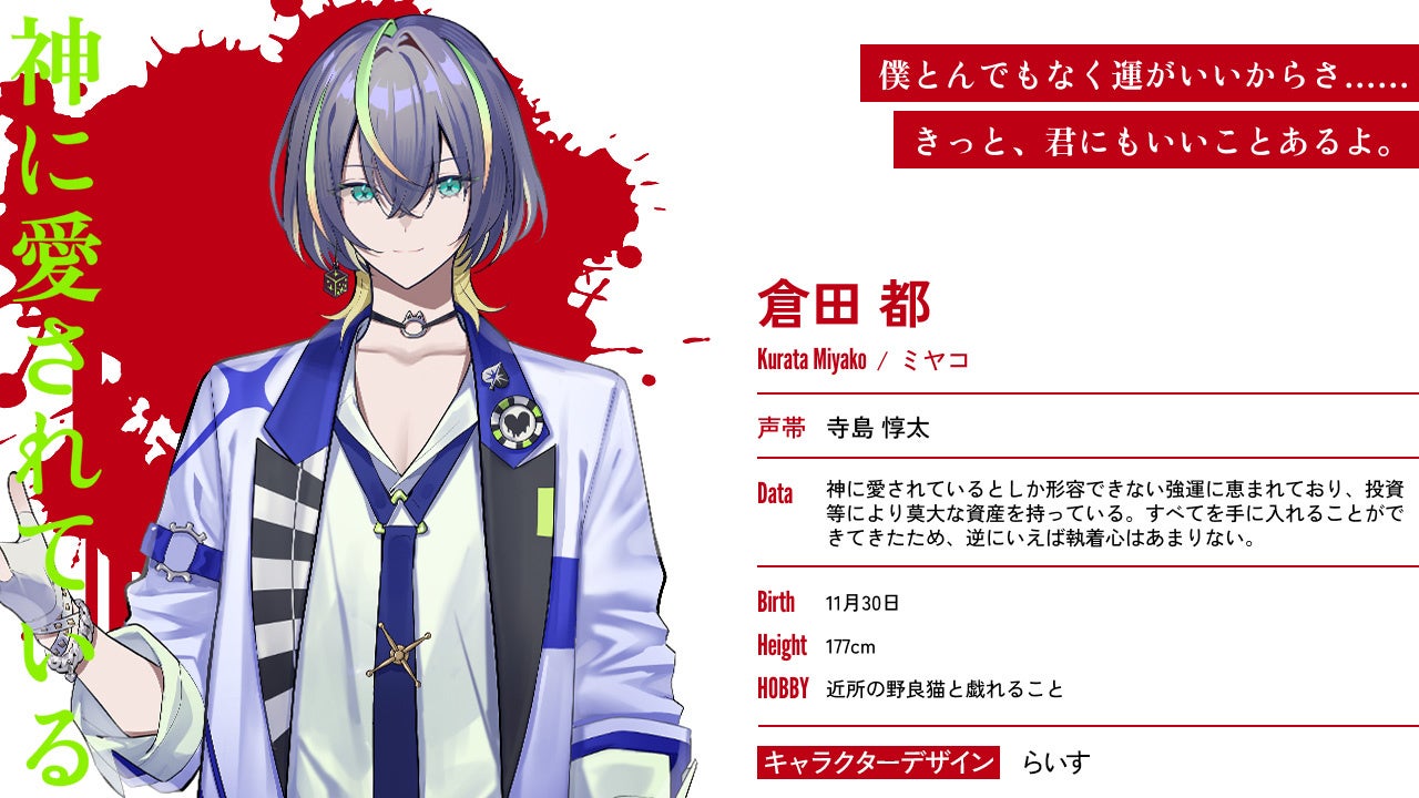 いずれのメンバーもスターが集結する芸能事務所「ジン・プロモーション」に所属するトップタレントで、さいとうなおき、星河シワス、らいすら3名の人気イラストレーター、漫画家がデザインを担当。声優キャストには小林親弘、寺島惇太、河西健吾、浦田わたる、小林大紀、木暮晃石ら6名の人気声優が起用されます。