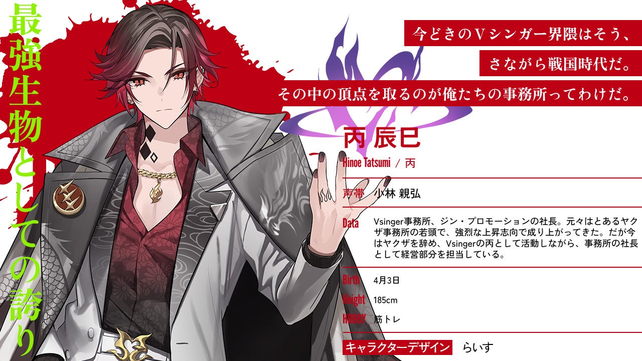 『星芥ショータイム』の物語において、「スター」と呼ぶに相応しいトップタレントたちが集結するVシンガー事務所が「ジン・プロモーション」です。今回発表する6人の新メンバーはいずれもこの「ジンプロ」に所属するVシンガーとなります。
