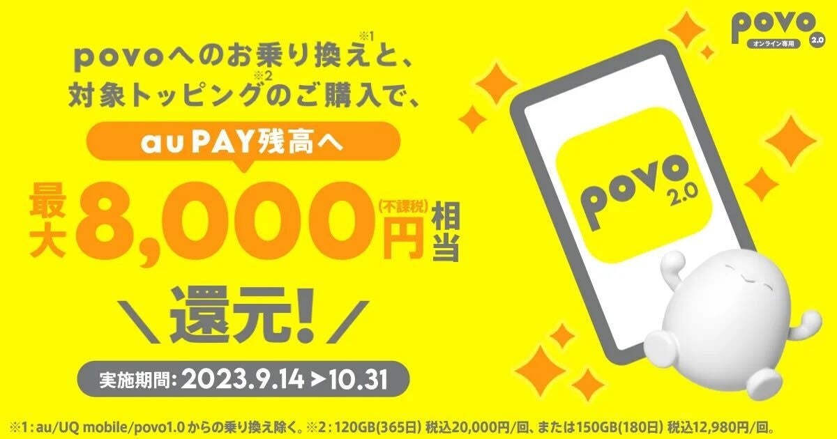 (3) 他社から乗り換えと対象トッピング購入で最大8,000円相当還元:2023年9月14日10:00~10月31日23:59