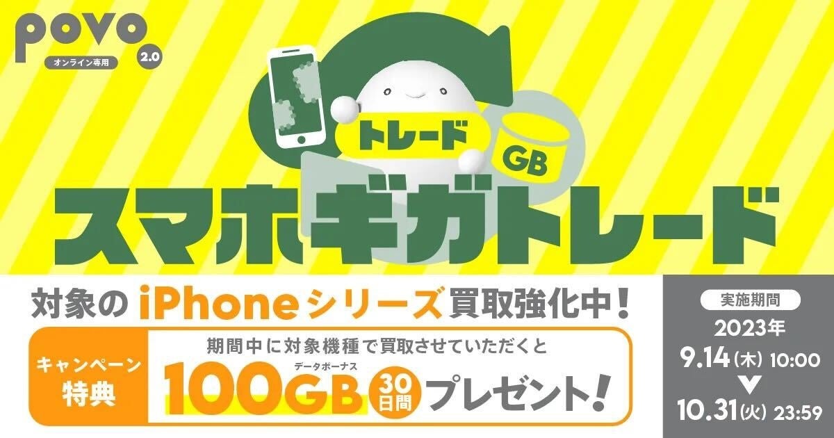 povo2.0、スマホ買い取りで100GB増量や、eSIMの新規加入キャンペーンなど開催