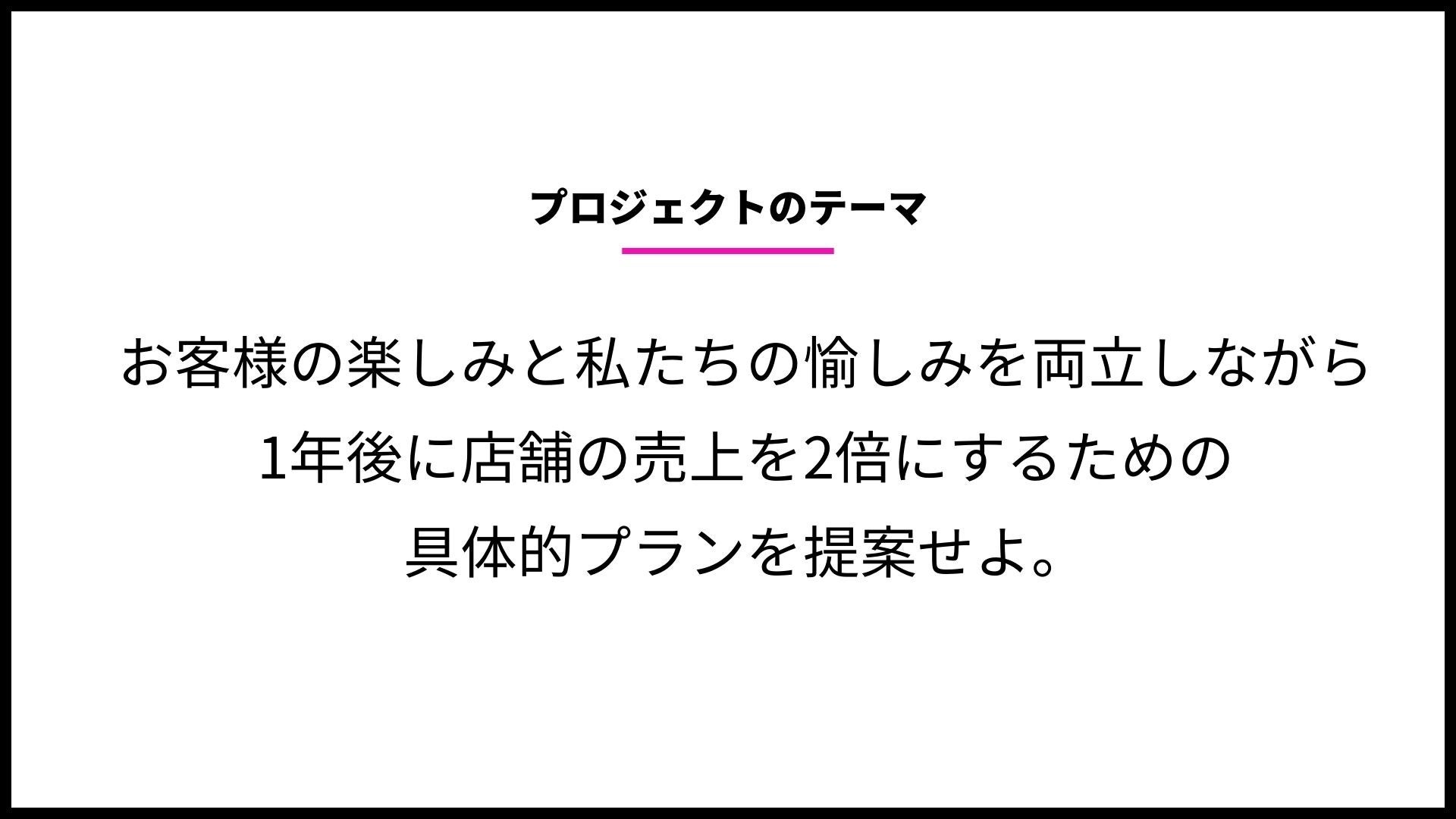 「Playful Journey」の最終的な課題は、「お客様の楽しみと私たちの愉しみを両立しながら、1年後に店舗の売上を2倍にするための具体的プランの提案」です。