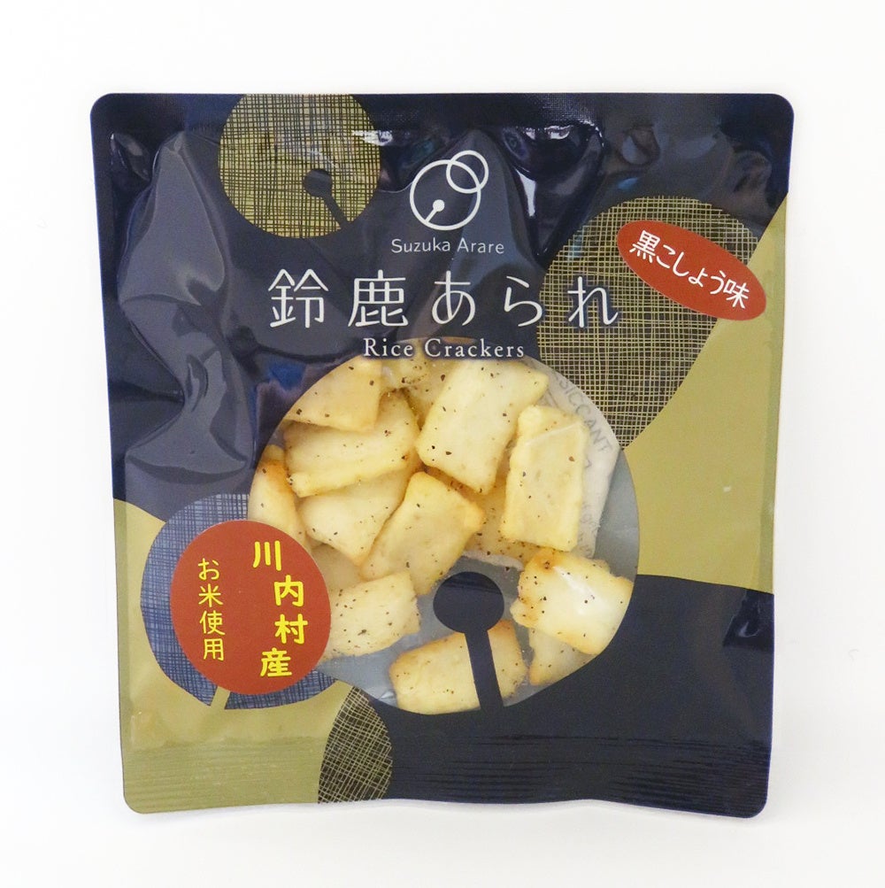 パッケージ商品名の「鈴鹿」とは、三重県鈴鹿市にある「鈴鹿あられ株式会社」が商品化に協力していただき当社の商品名を使用しています。