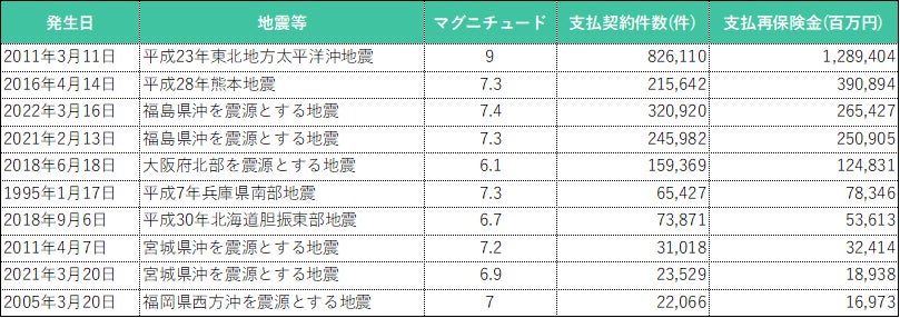 ■過去の地震保険による地震保険金支払額(支払額上位10位)