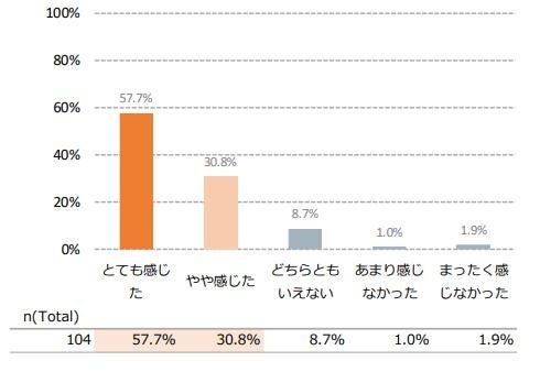 今回の調査の対象者の中には、過去に自身が被災した際、地震保険の支払いを受けたことがある方が104人いらっしゃいました。その方々を対象に、支払いを受けた保険金を主にどのように使用したかを尋ねたところ、63.5%の方は「家の建て直し・修繕」の費用に充てていましたが、11.5%の方は「当面の生活費」として使用していたことがわかりました。受け取られた方の実に88.5%は「地震保険に加入していてよかった・助かった」と実感していることがわかりました。