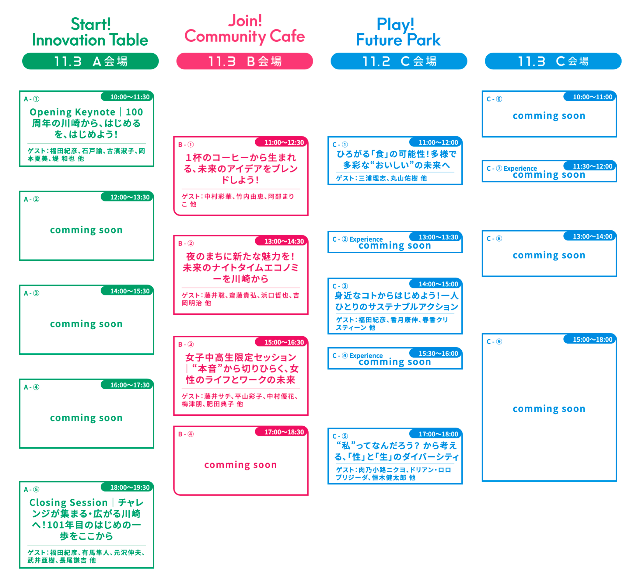開催場所:【カンファレンス】 川崎市役所本庁舎2F ホール、1F UNI COFFEE ROASTERY、ラゾーナ川崎プラザルーファ広場/【フェスティバル】 ラゾーナ川崎プラザルーファ広場