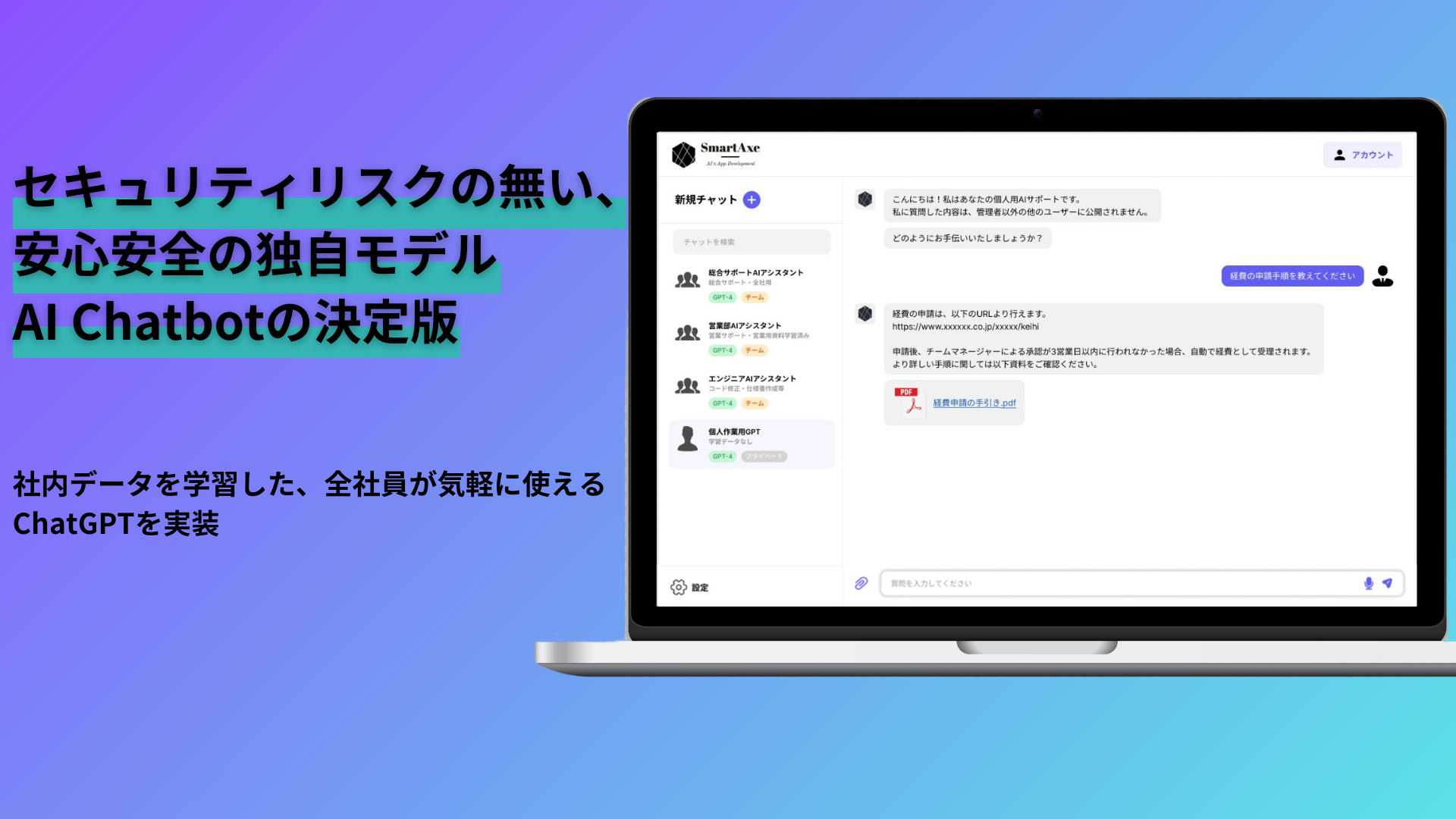 情報流出リスクのないセキュアな設計やシンプルで洗練されたUIにより、誰でも簡単にカスタマイズされたChatGPTを利用することが出来ます。