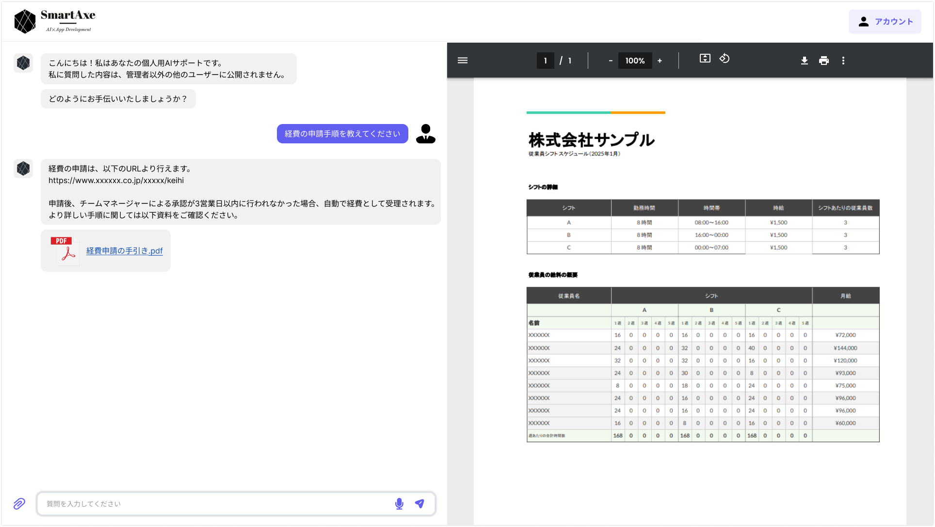 2.独自PDF参照、個人情報の自動マスキング、業務ごとのモデル変更等多様な機能