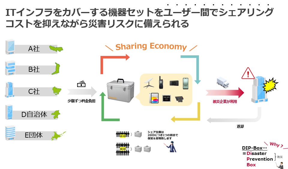 災害時に必要な通信機器をユーザー間でシェアリングすることで