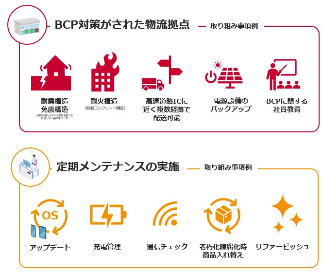 BCP対策がされた物流拠点に保管し定期メンテナンスを実施