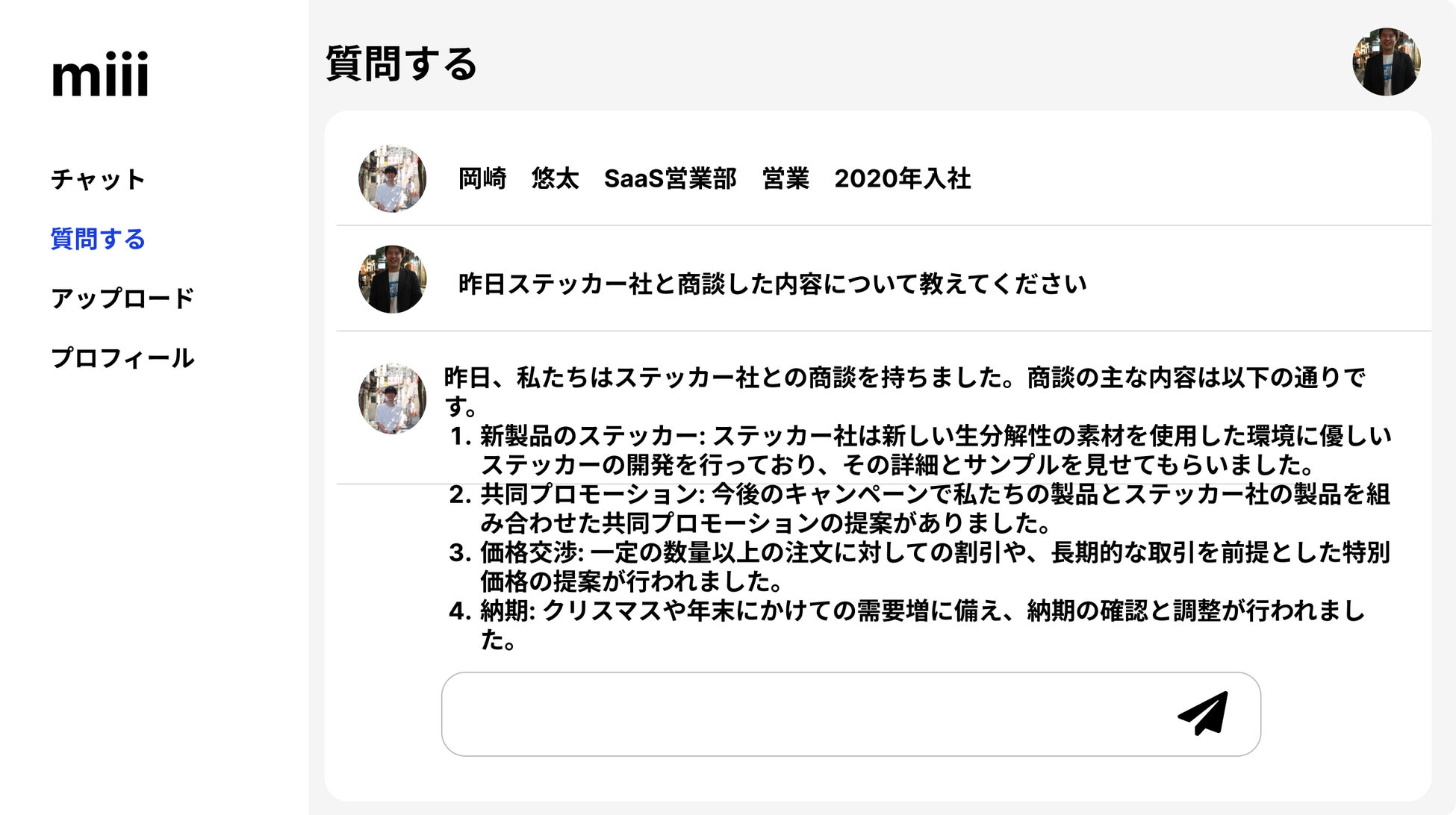 例えば上司のAIに対して質問することができます