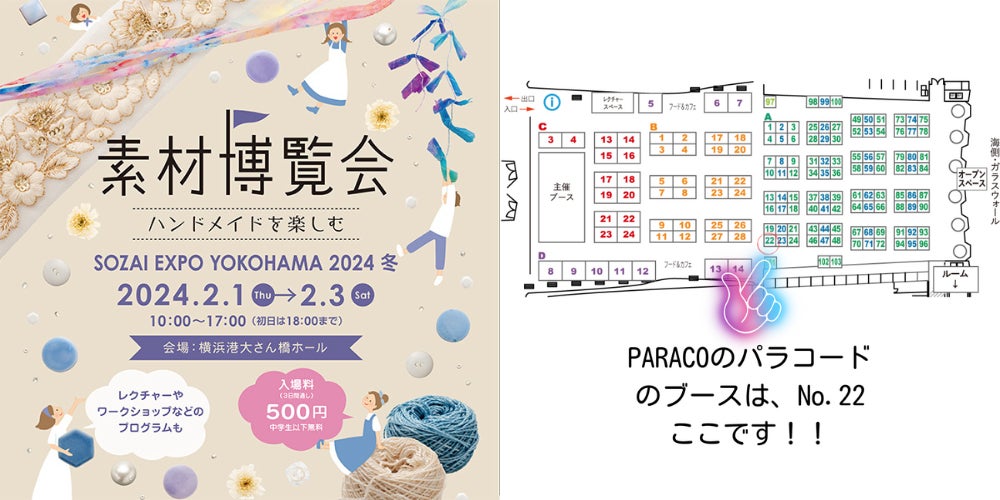 素材博覧会YOKOHAMA PARACOブースにて【パラコード通信 VOL.1~3】を無料でお配りしています。