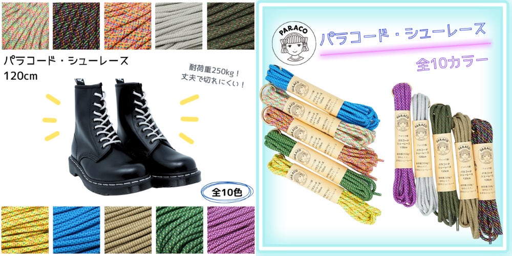 【新製品! パラコードを使った丈夫で切れにくい靴ひも ”パラコードシューレース”】