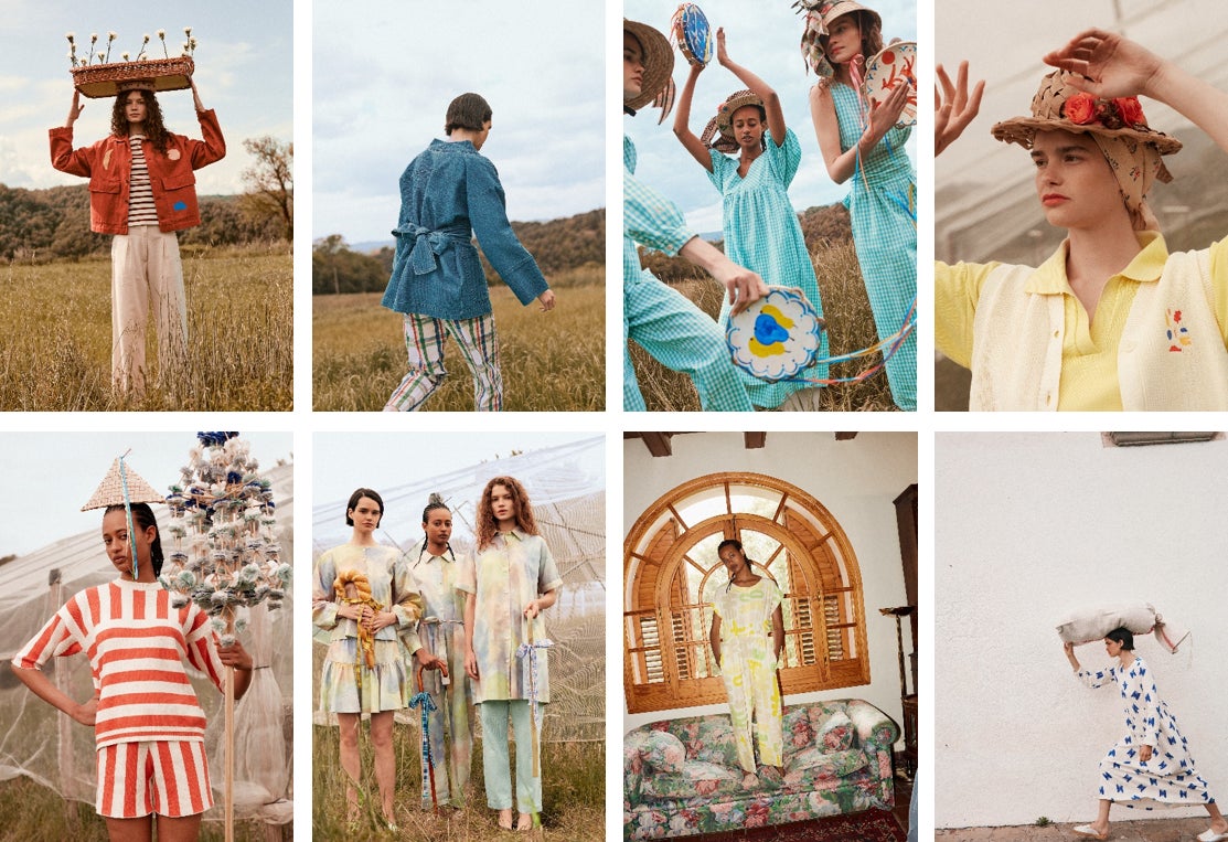 本コレクションでは、ブランドのバイブスを表現する様々なカラーとプリントを特徴としており、ニュートラルカラーや夏にぴったりの明るいトーンまで幅広く、3つのセクションに分けられています。1つ目は、錆、ティーグリーン、オフホワイトのカルデラ、ウォーターグリーン、生成り、ダークブルーのパレットに、オレンジ、チェック柄、青い蝶がアクセントとなった“ Summer Landscape ”のプリント。2つ目は、フューシャ、イエロー、スカイブルーのチェック柄に、“ Skylight ”プリント。3つ目は、ピンク、ライム、クラインブルーなどの明るい色調に加え、紙吹雪柄、ブルー×レッドのチェック柄、カーニバル柄そしてストライプ柄が特徴です。コレクションを通して、テーマであるフェスティバルの風景や瞬間にインスパイアされたプリント、トマト柄の皿、スマイル・マスク、幾何学的な形、蝶、花火といった夏のモチーフが全面に施されたラインアップ。