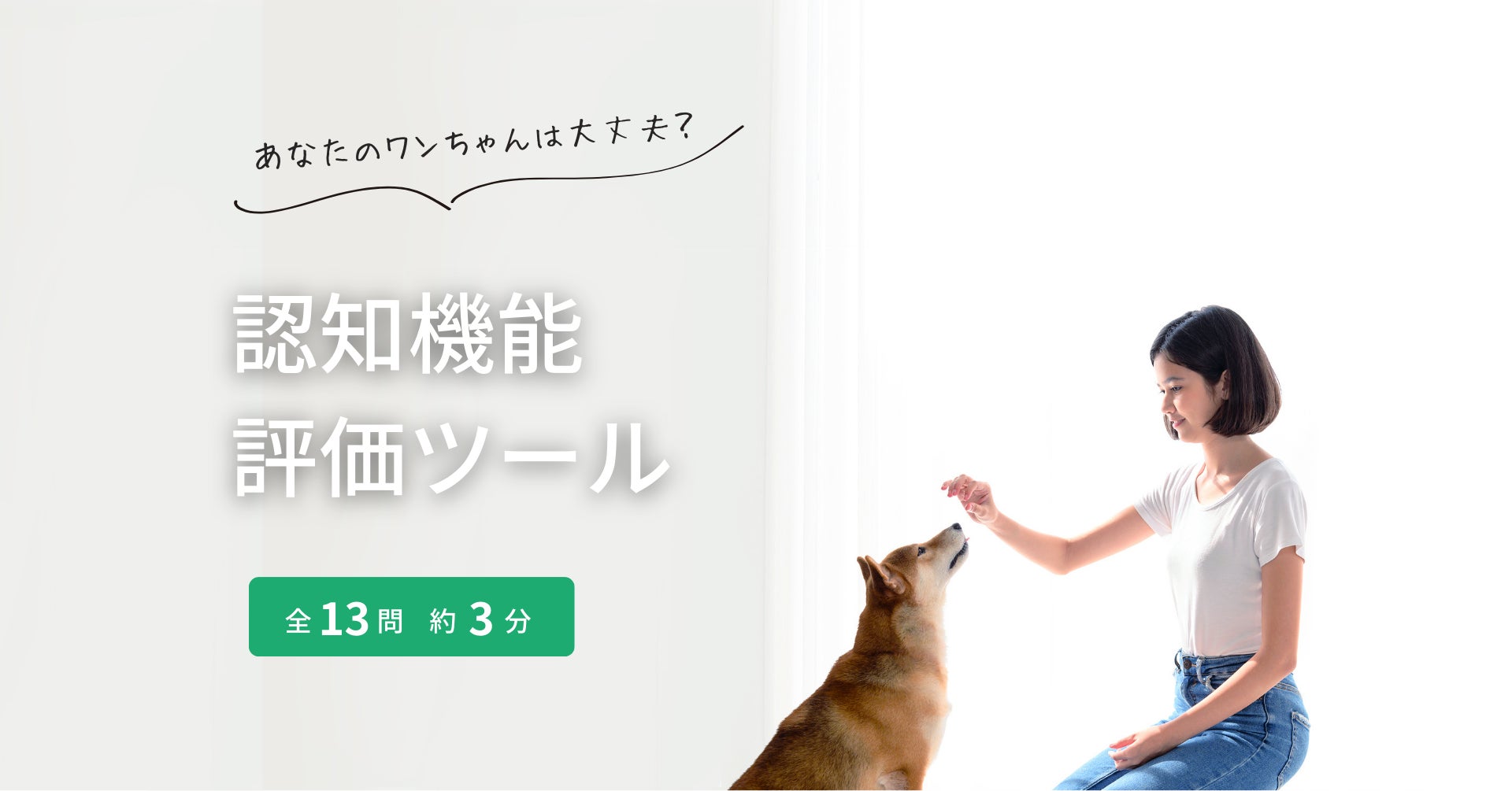 毎日一緒に過ごす飼い主さまでも見逃してしまいがちな変化を、当「認知機能評価テスト」によって客観的に評価することで動物病院の受診を促し、認知機能障害の早期発見・早期治療に繋げられればと考えています。