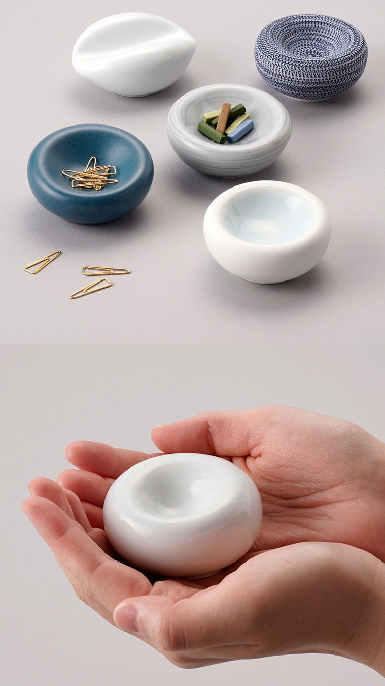 毎年、ご好評いただいている白山陶器デザイン室で制作している特別な記念品。今回はコロコロしたかわいらしいかたちに“えくぼ”のようなへこみを施したオブジェをご用意しております。