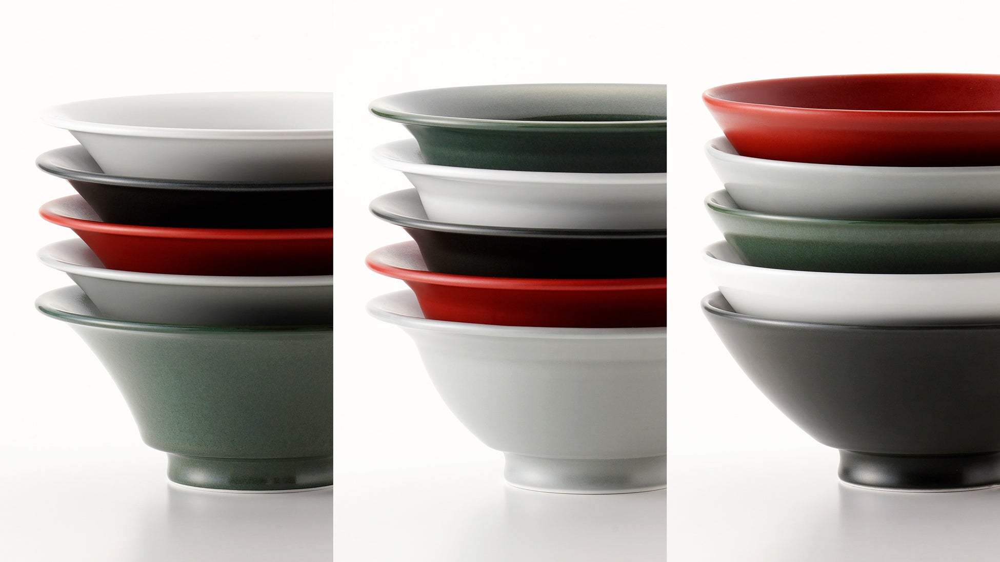 「RAMENBOWL」の発売にあわせて、エバーグリーンマットとカーマインマットの新しい釉薬の2色が登場しました。