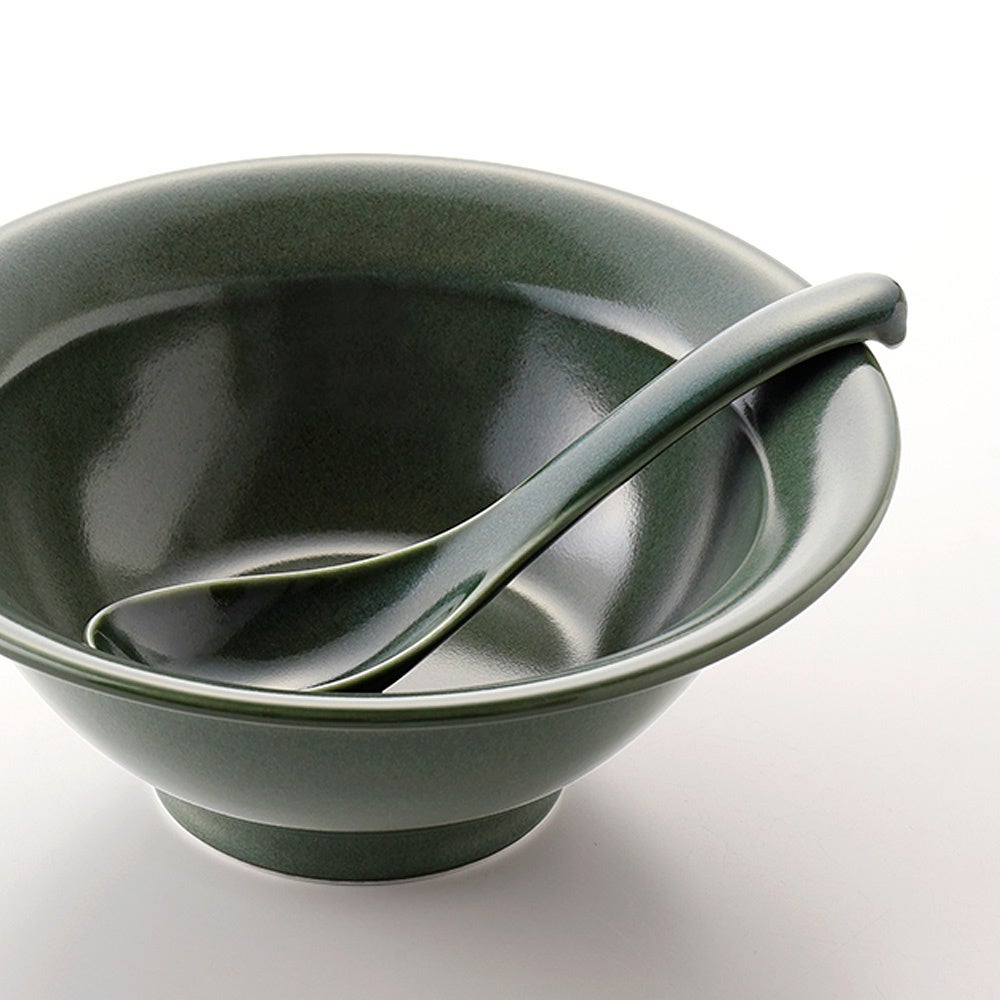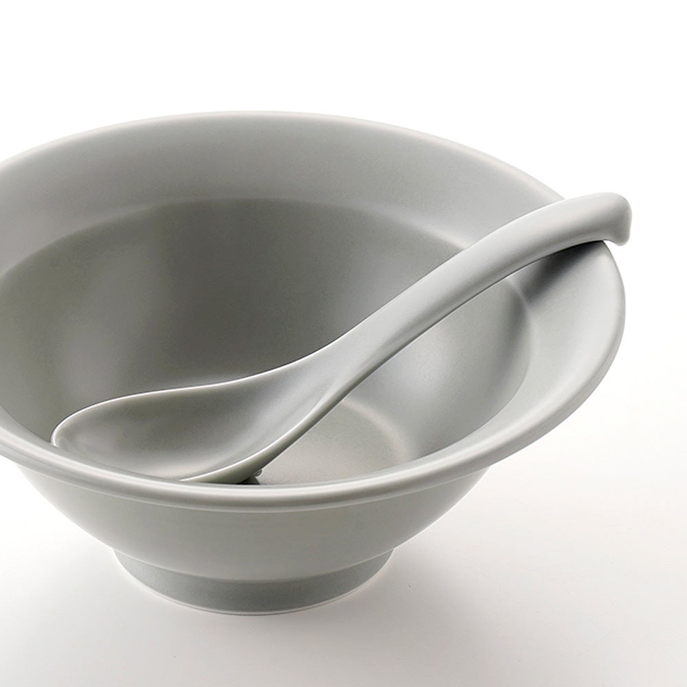 ラーメンボウルにあわせて、手に持ちやすく具材やスープをすくいやすいレンゲとして「RAMENSPOON」を同時に発売します。すくう部分と柄は自然な曲線でつながる洗練されたたたずまい。柄尻が器の縁に掛かりすべり落ちないよう機能性にも考慮しました。ラーメンボウルと同じ5色展開となっております。
