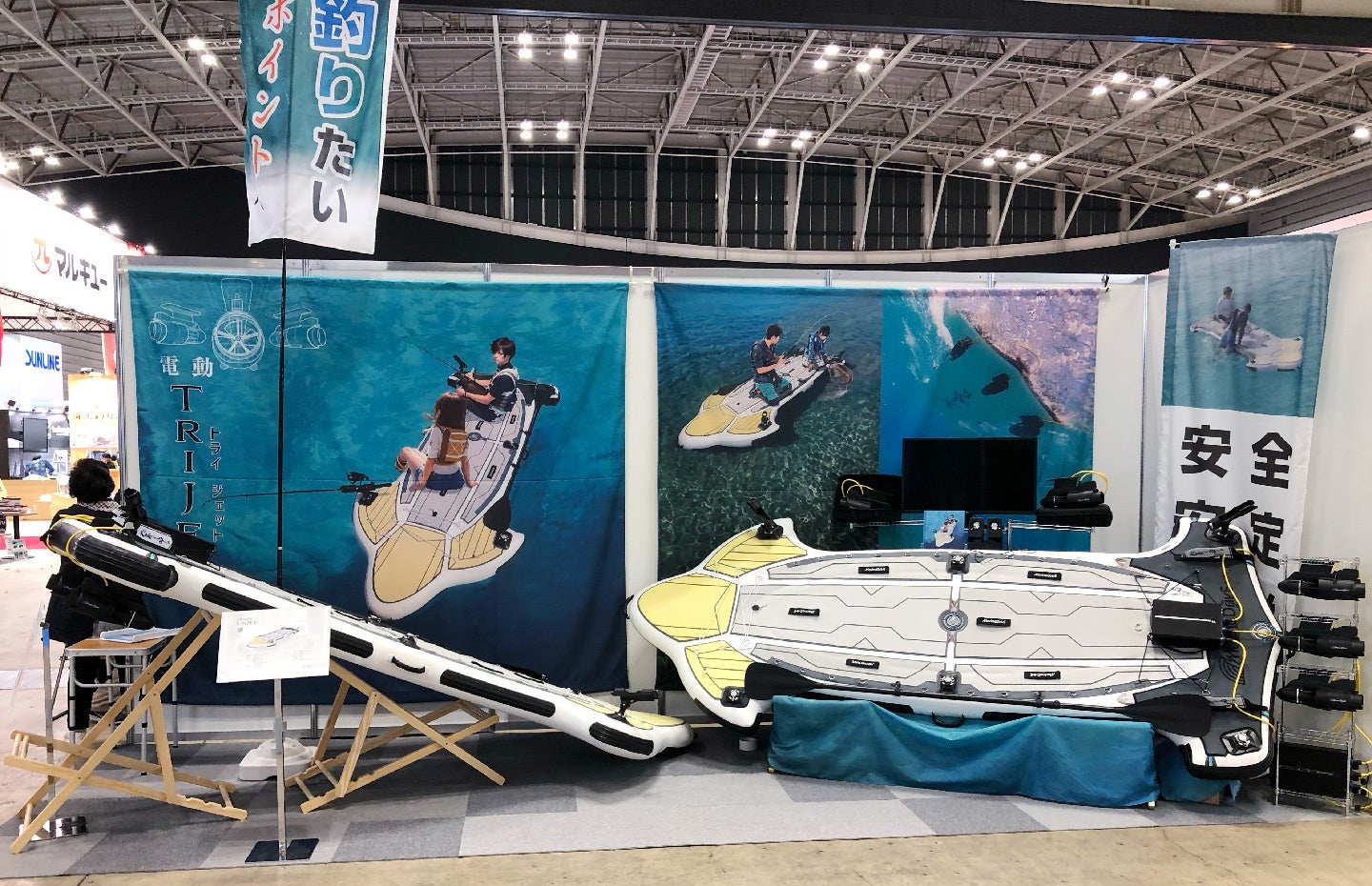 マリンドライブ 電動トライジェット、『釣りフェスティバル2024』に初出展。製品に触れる操作体験コーナーも設置。