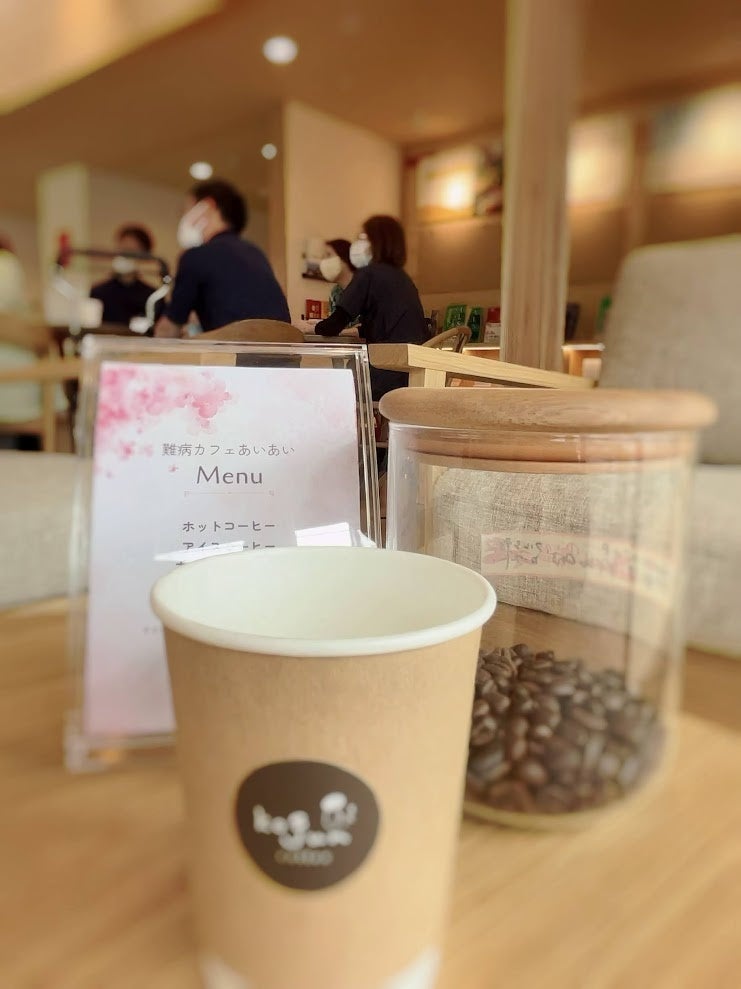 淹れたてのコーヒーやドリンク(無料)をゆったり飲みながら、参加者さま同士のお話や交流を楽しんでいただき、難病カフェに行くことが皆様の楽しみの一つになれば幸いです。