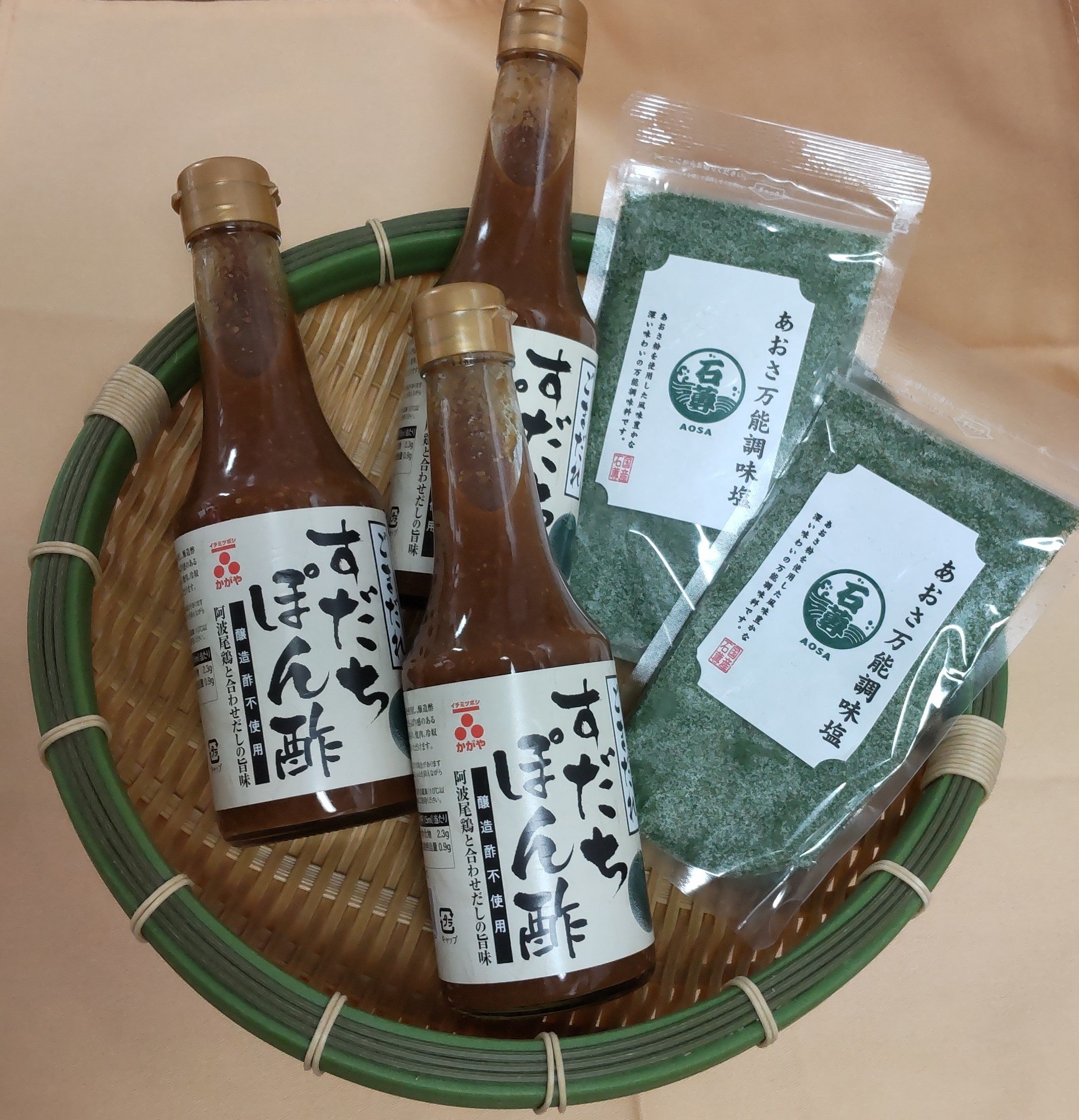 あおさ万能調味塩・・・貴重なあおさ海苔をパウダーにしてお塩に混ぜ込みました。磯の香りが香ばしい