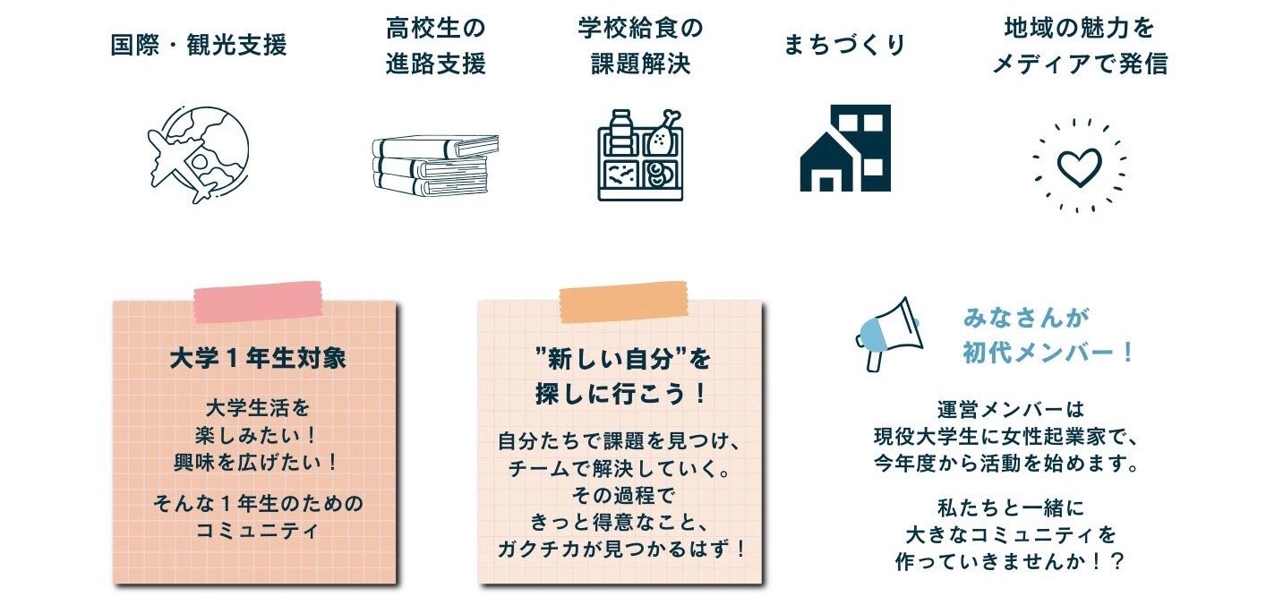 また、運営メンバーには現役大学生のほか、会社を経営している社会人も参画しているため、官民連携をテーマに大学のキャンパスの枠にとどまらない取り組みを行っていきます。