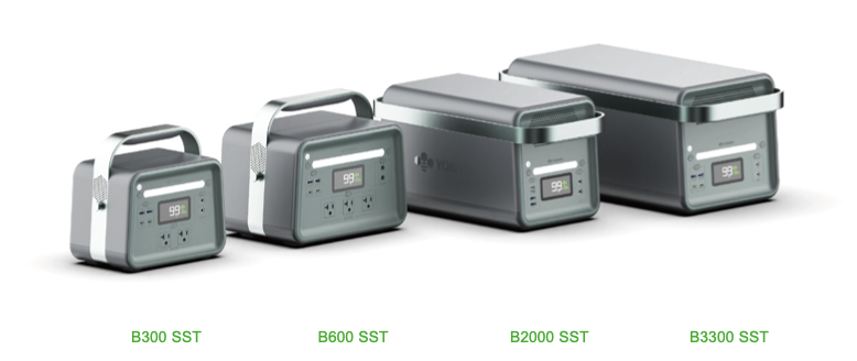 今回販売する製品(固体電池ポータブル電源)はB300 SST、B600 SST、B2000 SST、B3300 SSTの4種類と専用ソーラーパネル2種類。商品型番の数字は定格出力を示し、300Wから3300Wまでの電子機器が利用可能。