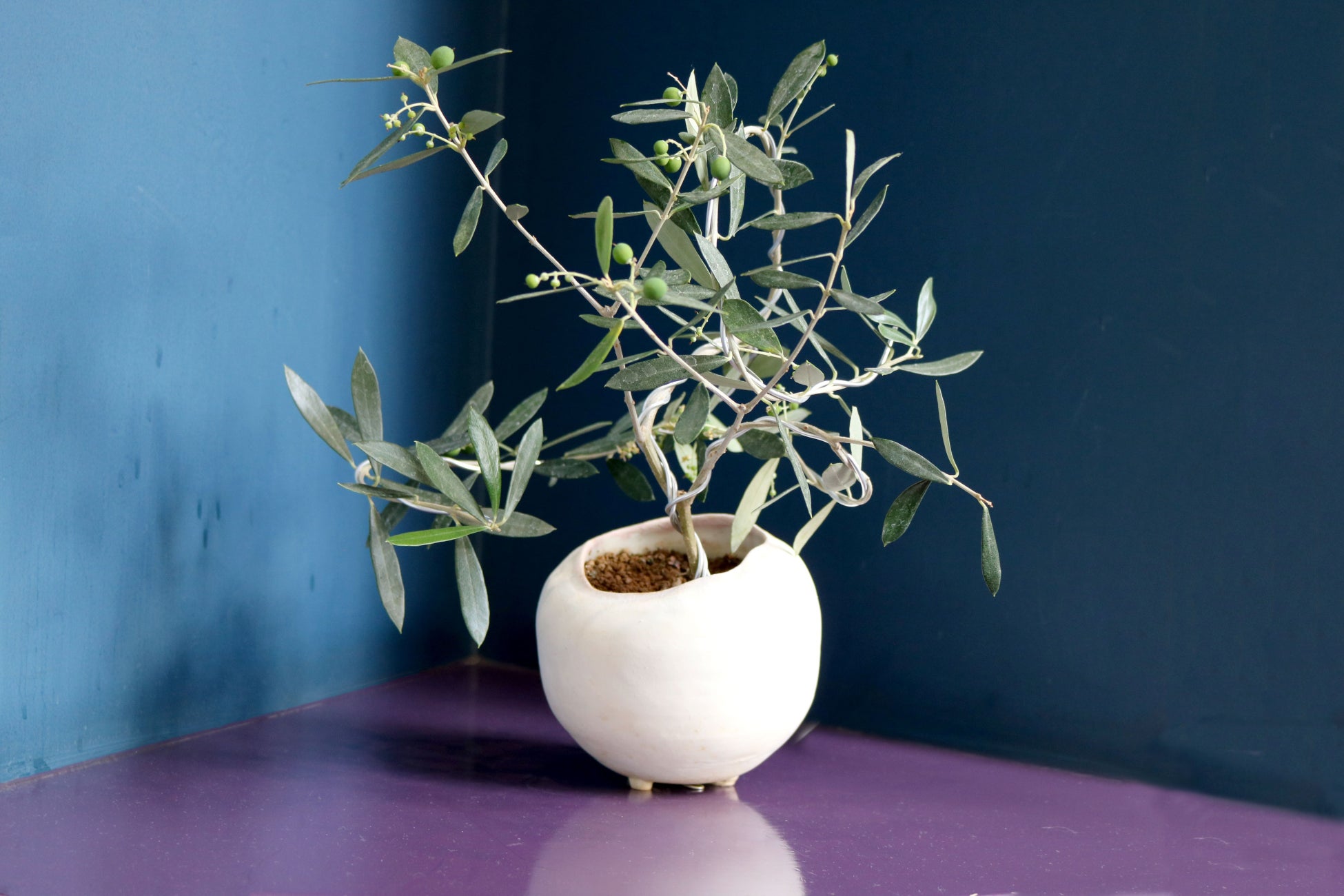 実付きオリーブの盆栽バージョンです。武蔵野美術大学生が制作する一点ものの焼鉢とセットで提供します。弊社は、オリーブと過ごす日々を演出すると同時に、若者を応援する一環として本商品の開発提供を致します。
