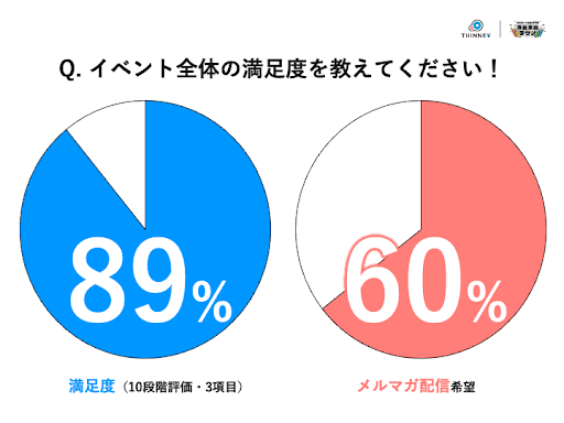 実際にイベントへ参加した保護者の方々へのアンケート調査の結果、上記のような評価をして頂くことが出来ました。総じて高いサービス満足度、顧客満足度を獲得することができました。特に、メールマガジンの配信を希望された保護者が多く、今回のイベントに参加したことで、よりお金に関わる教育が必要であると感じていただけたようです。