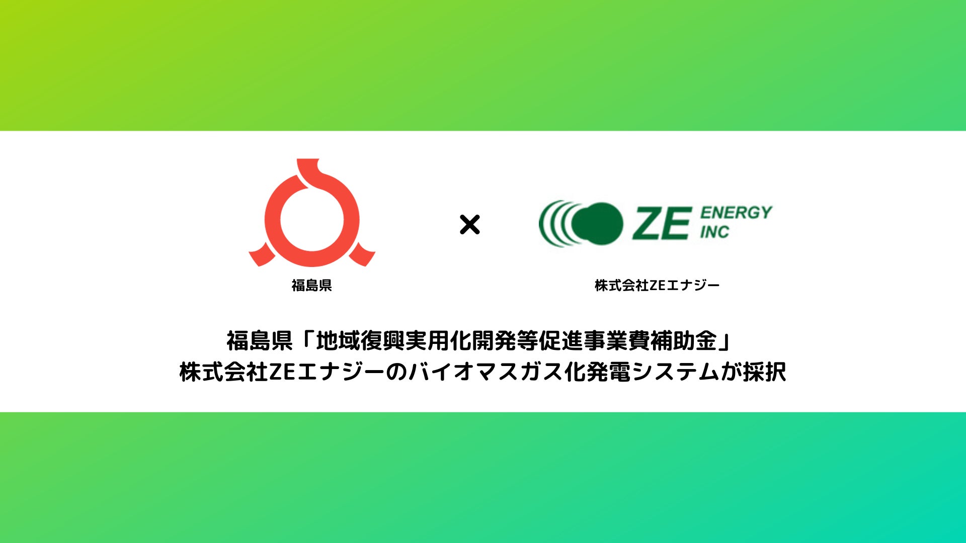 福島県「地域復興実用化開発等促進事業費補助金」にバイオマスガス化発電システムの開発を行う『ZEエナジー』が採択決定