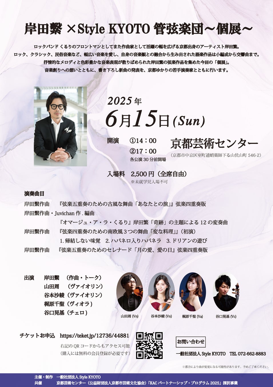 Style KYOTO管弦楽団の弦楽メンバーによる演奏で岸田繁の「個展」をお楽しみください。