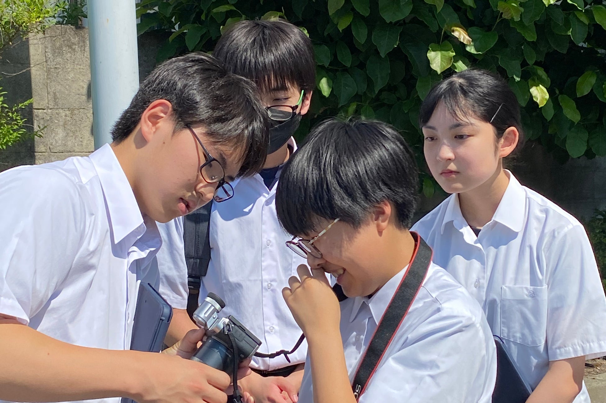 撮影は高校生たちが自ら行いました。一眼レフのカメラを触るのもはじめてといった生徒も多い中、なんとか撮影をしました。